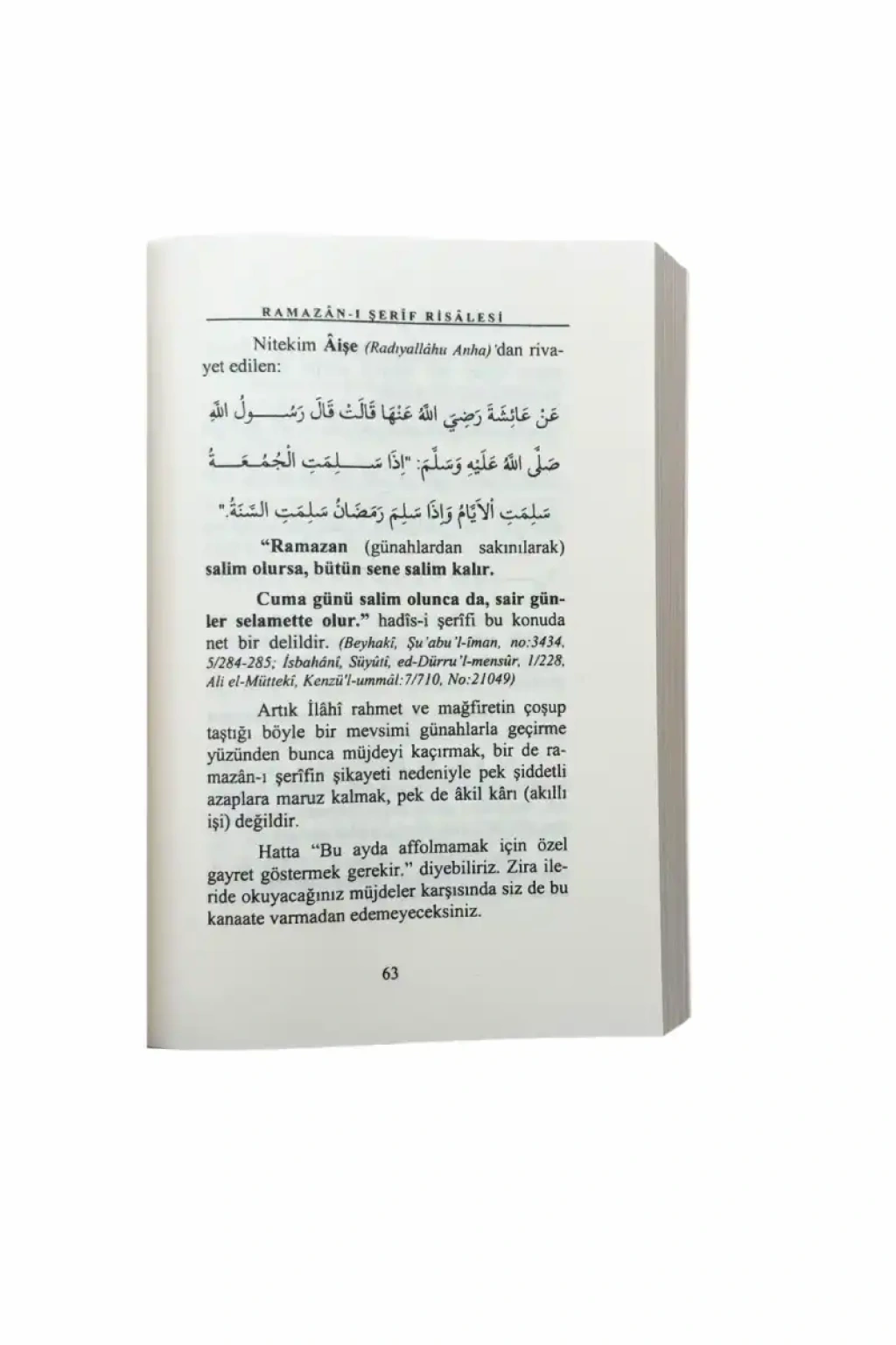 Eğer (bir sonraki) ramazana ulaşmadan ölecek olursa Allâh-u Te‘âlâ katında onun için kendisi ile ateşten sakınacağı hiçbir hasene (ve sevap) bulunmayacaktır. O halde siz ramazan ayında Allâh-u Te‘âlâ’dan sakının. Zira gerçekten diğerlerinde katlanmadığı kadar sevaplar onda katlanır. Günahlar da böylecedir.” (Taberâni, el-Mu‘cemü's-Sağîr, 1/248; Abdülkâdir el-Geylânî, el-Gunye, 2/9; Isbehânî, Süyûtî, ed-Dürrü’l-Mensûr, 2/229)
