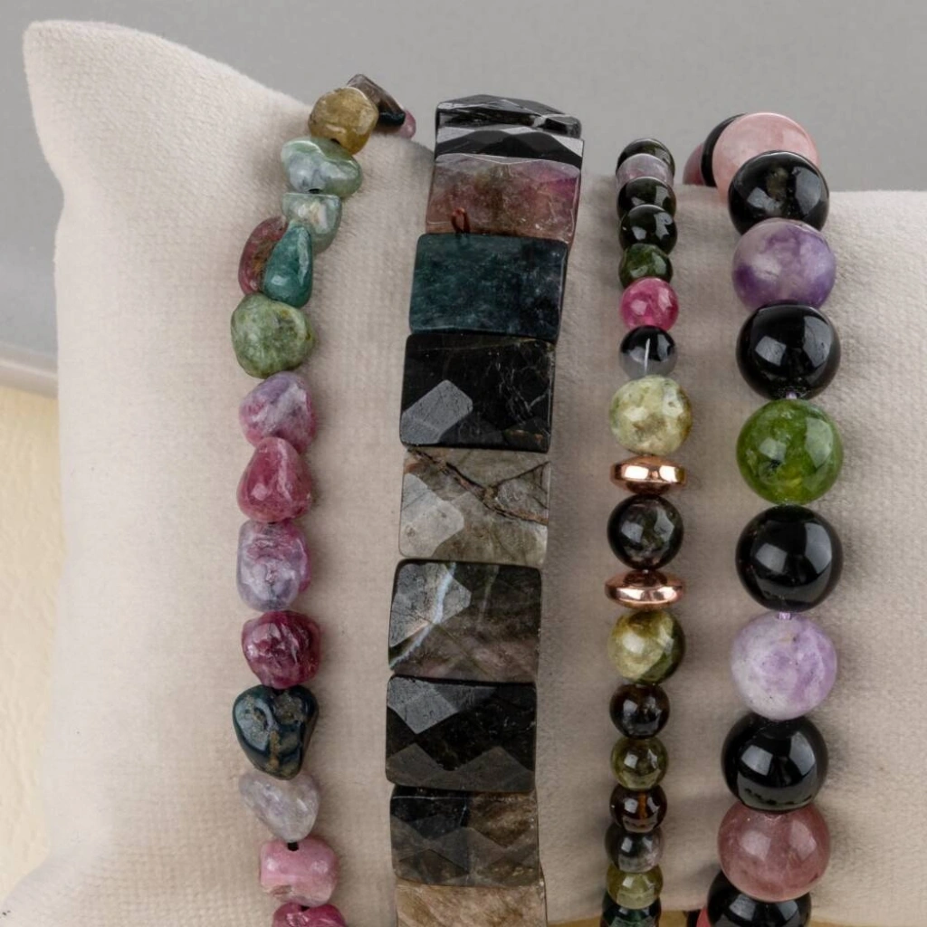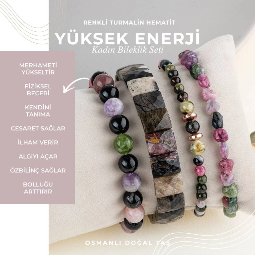 Renkli Turmalin Doğal Taş Kadın Bileklik Seti