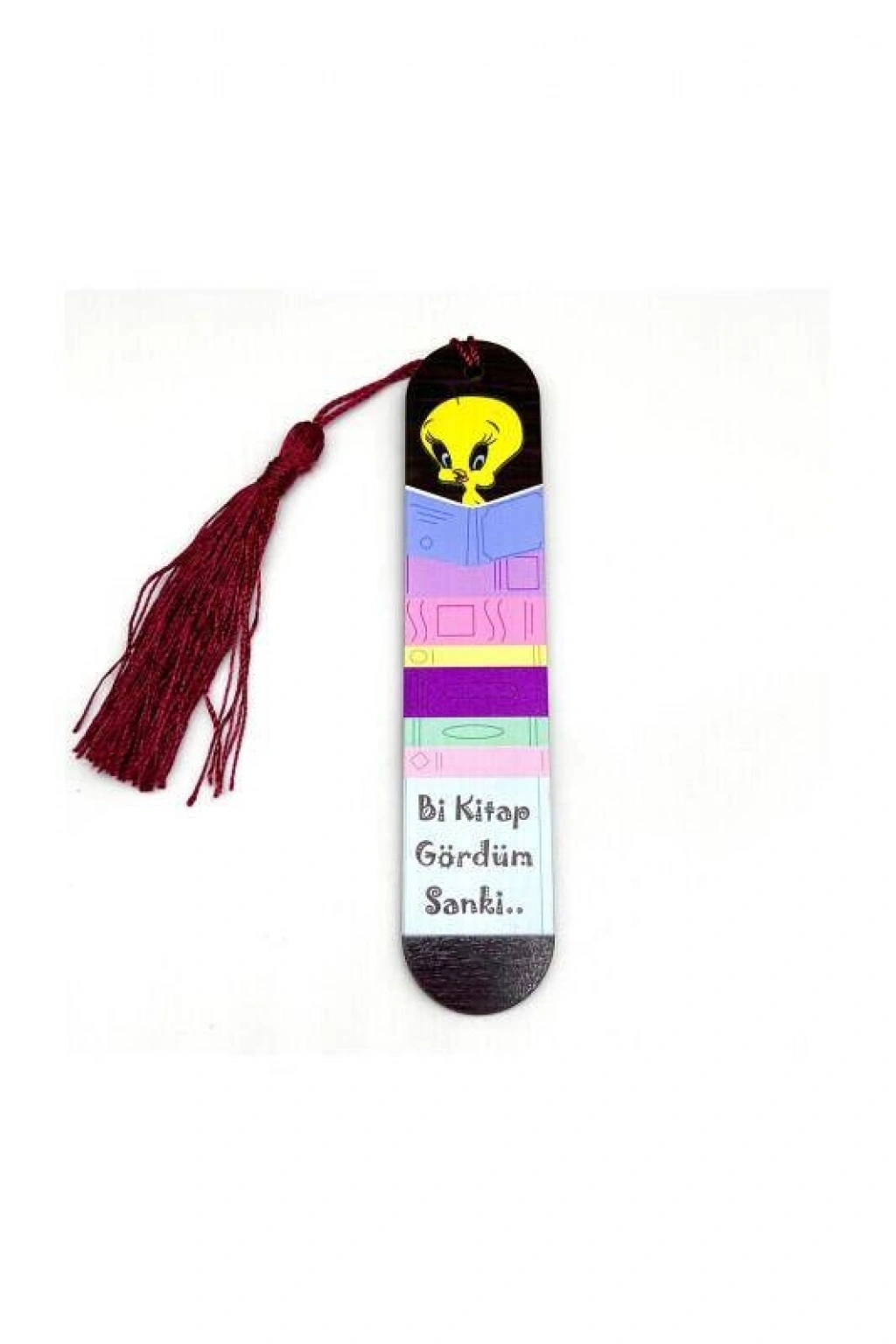 Resimli Püsküllü Kitap Ayraç - Bi Kitap Gördüm Sanki