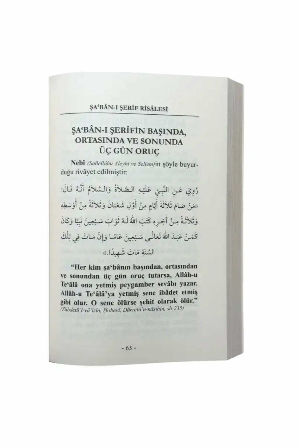 "Şa'ban benim ayımdır. Kim Şa'ban ayına değer verirse, muhakkak ki o, benim emrime önem vermiş olur. Benim emrimi büyük tutana ise, ben kıyamet günü öncü bir kurtarıcı ve iyi bir hazırlık olurum."
