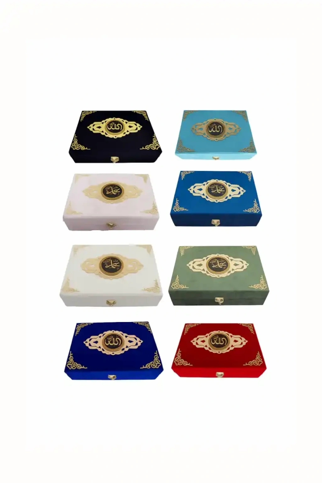 Plaketli Kuranı Kerim Orta Boy Kadife Ayyıldız Desenli