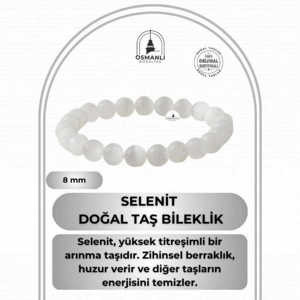 Selenit 8mm Doğal Taş Bileklik