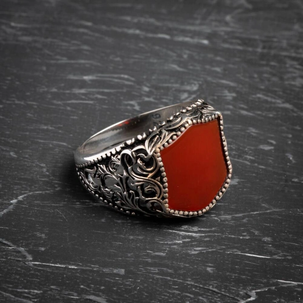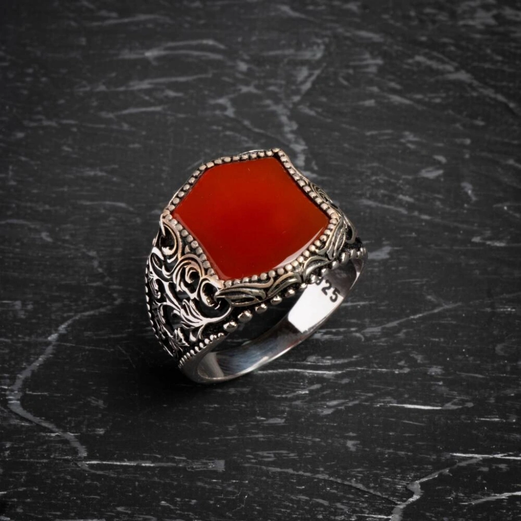 Sertifikalı 925 Ayar El İşlemesi Desenli Akik Yüzük (Erkek) Güç, koruma ve kararlılığın sembolü olan Akik doğal taşının eşsiz enerjisiyle tanışın. Yüzüğümüz, Sertifikalı 925 Ayar Gümüş üzerine usta El İşlemesi Desenler ile bezenmiş olup, hem asil bir duruş hem de ruhsal denge sağlayan güçlü bir aksesuardır. Akik Taşının Gücü ve Yüzüğün Özellikleri Akik (Koruma ve Denge): Akik, güçlü bir koruyucu taştır. Negatif enerjilere karşı kalkan görevi görür, duygusal, fiziksel ve zihinsel dengeyi sağlamaya yardımcı olur. Kararlılığı ve özgüveni destekler. Sertifikalı Güvenilirlik: Yüzüğün taşı sertifikalı olup, orijinalliği ve kalitesi garantilenmiştir. Kullanılan gümüş ise yüksek standartlı 925 Ayar saflığındadır. El İşlemesi Sanat: Yüzük kasası, usta ellerde hayat bulan özel desenli el işlemeleri ile süslenmiştir. Bu detaylar, yüzüğe benzersiz, otantik ve yüksek sanatsal değer katar. Asil ve Erkeksil Tasarım: Akik taşının derin ve doğal renk tonları ile gümüşün asil parlaklığı, güçlü ve karizmatik bir erkek stilini tamamlar. Bu özel yüzük, hem geleneksel el sanatının izlerini taşır hem de modern erkeğin günlük yaşamda aradığı gücü ve dengeyi sunar.