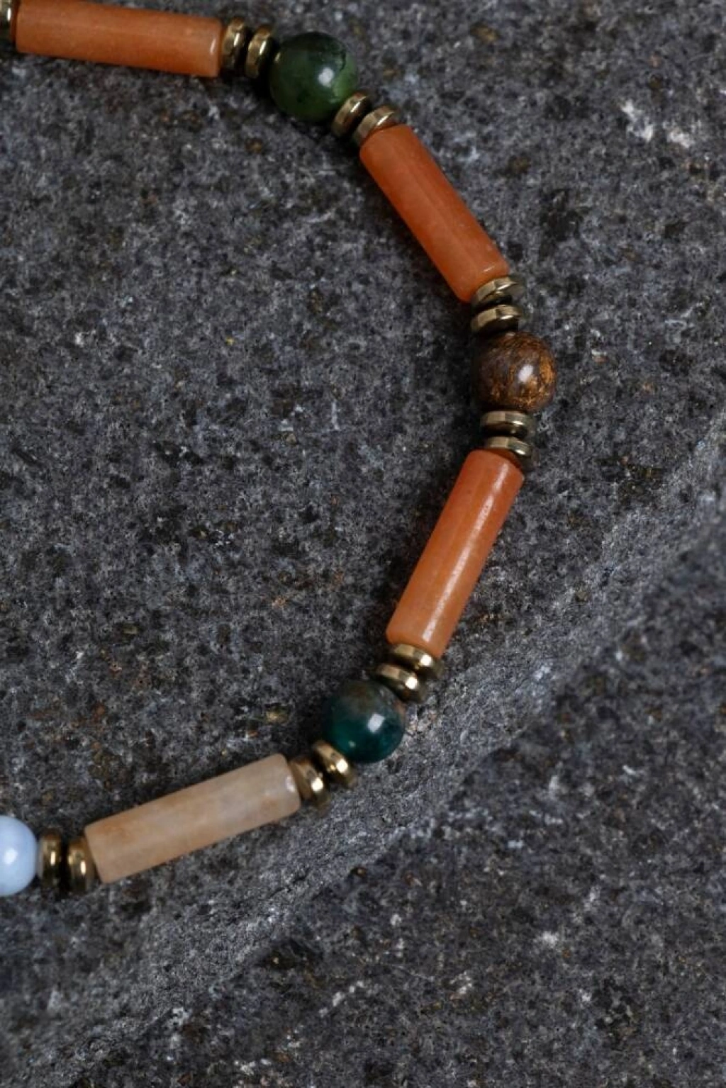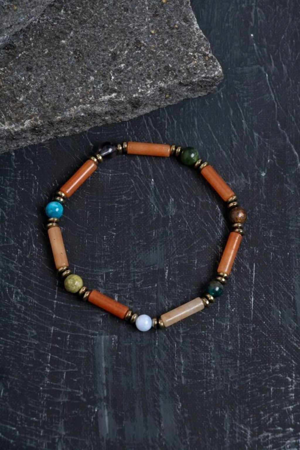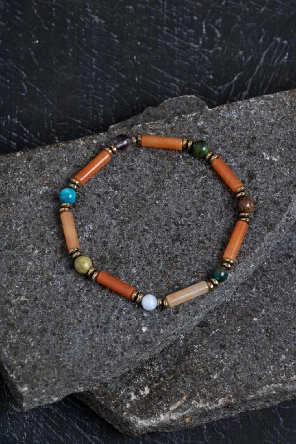 Doğal taşların eşsiz uyumunu bir araya getiren bu bileklik; ruhsal denge, zihinsel açıklık ve güçlü bir koruma alanı oluşturmak isteyenler için ideal. Apatit: Odaklanmayı artırır, zihinsel berraklık sağlar. Aventurin: Şans, huzur ve bolluk enerjisi taşır. Bronzit: Karar verme gücünü artırır, stresle baş etmeyi kolaylaştırır. Yeşim: Kalp çakrasını dengeler, içsel huzuru destekler. Florit: Negatif enerjileri temizler, zihinsel netlik sunar. Yeşil Turmalin: Kalbi korur, ruhsal iyileşmeyi teşvik eder. Akuamarin: İletişimi güçlendirir ve duygusal sakinlik sağlar. Tüm taşlar sertifikalı orijinal doğal taşlardır. Hem ruhsal fayda hem de estetik bir tamamlayıcı arayanlar için mükemmel bir seçim.
