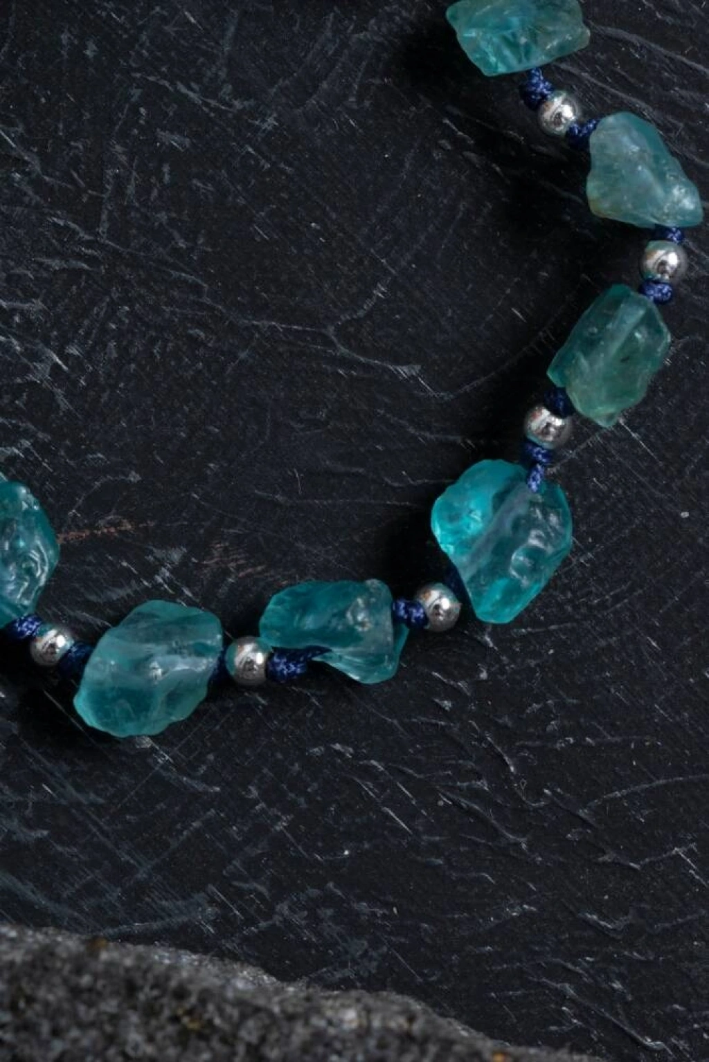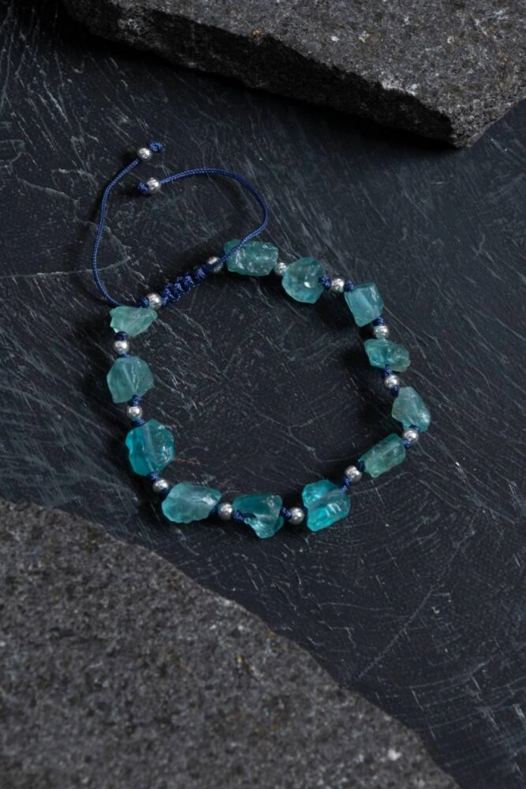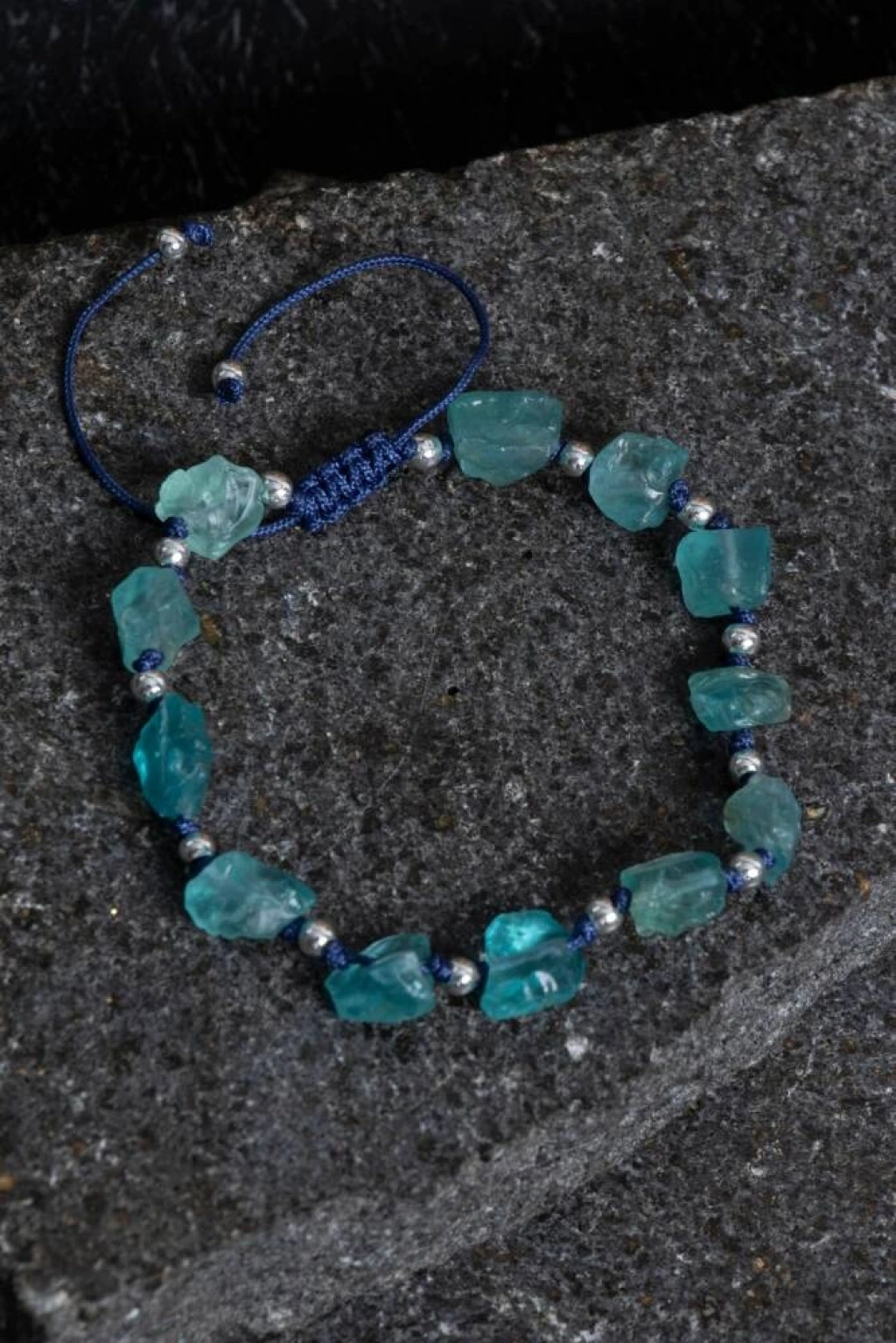 Canlı mavi tonlarıyla enerjinizi yükseltin! Bu özel tasarım bileklik, ruhsal netliği artıran apatit taşı ve dengeleyici hematit ile hazırlanmıştır. Apatit: İlham verir, iletişimi güçlendirir ve motivasyonu artırır. Hematit: Topraklayıcı etkisiyle zihni sakinleştirir ve içsel denge sağlar. Ayarlanabilir makrome yapısıyla her bileğe uygundur. Doğal taşların ham formu, bilekliğe özgün ve doğal bir görünüm kazandırır.