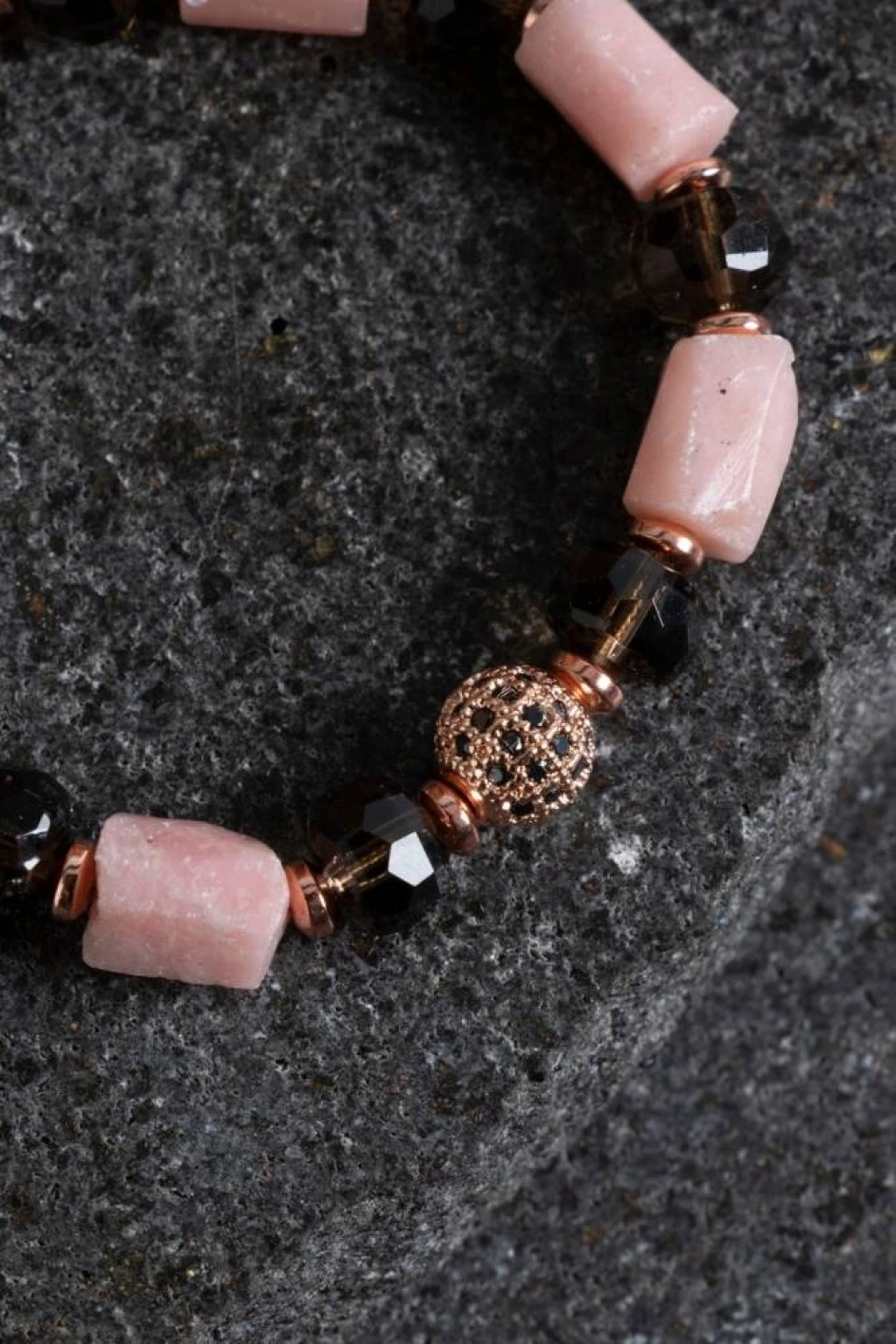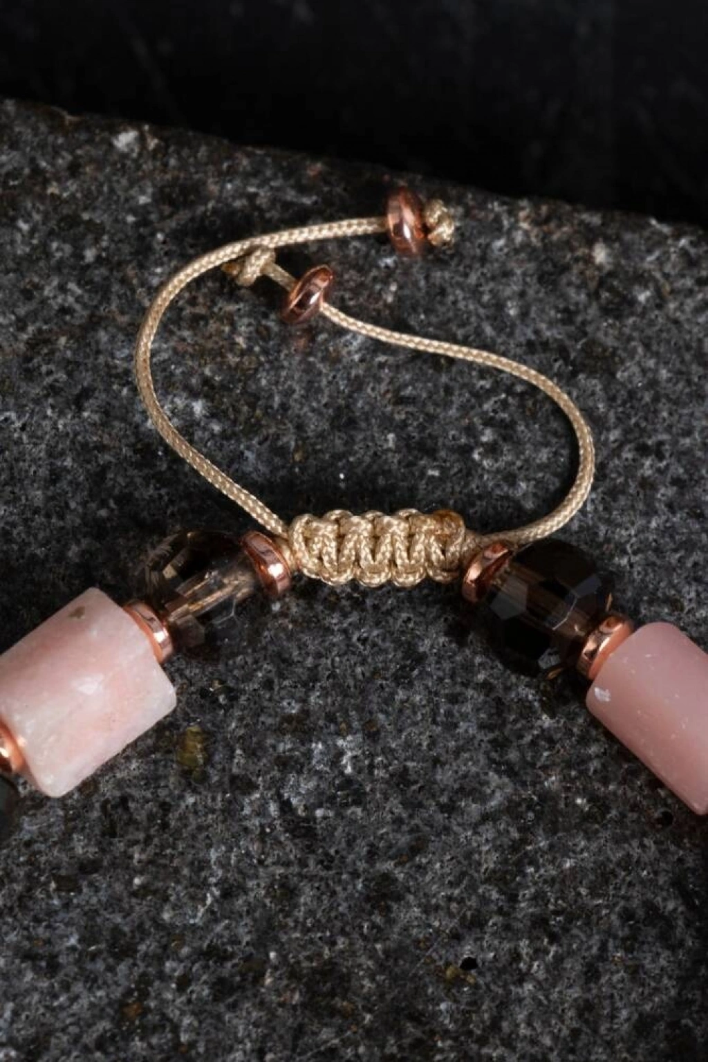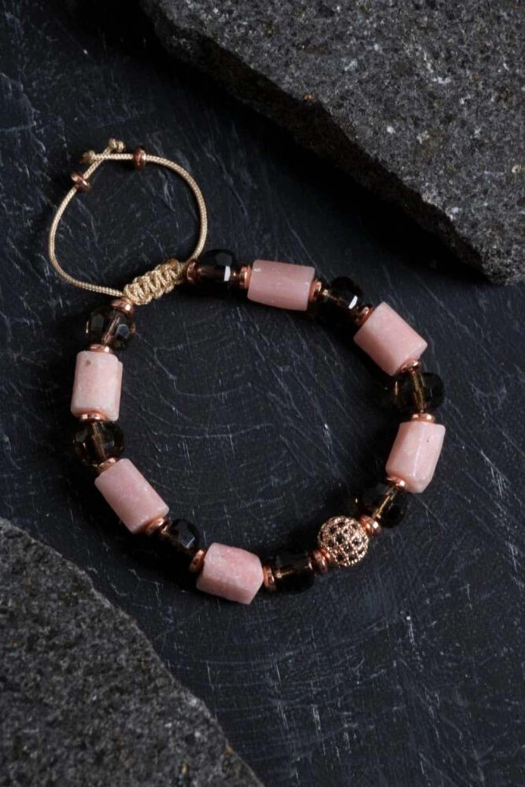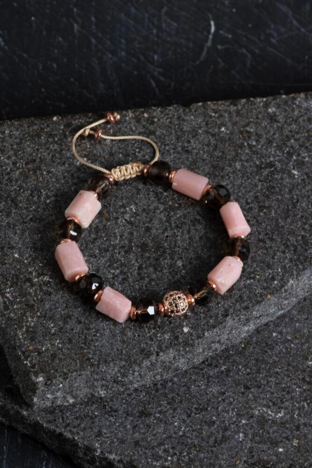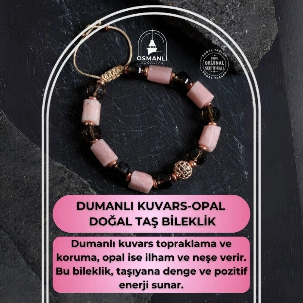 Zarafetin ve huzurun bir araya geldiği özel bir tasarım! Dumanlı Kuvars, negatif enerjiyi uzaklaştırır, zihni sakinleştirir ve odaklanmayı artırır. Opal, içsel huzur verir, duygusal dengeyi destekler ve sezgileri güçlendirir. Yumuşak pembe ve derin kahverengi tonların uyumuyla tasarlanan bu bileklik, hem ruhunuza hem stilinize dokunur.
