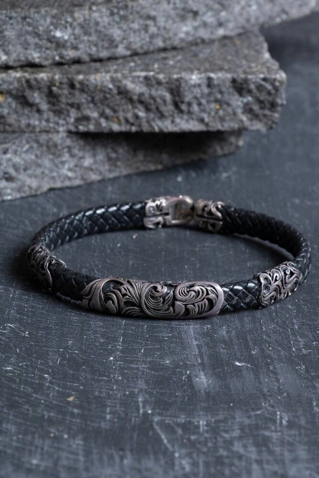 Gümüş Yaprak Detaylı Deri Bileklik Doğanın asaletini teninizde hissedin, tarzınıza taze bir nefes katın! Yaşamın döngüsünü ve büyümesini temsil eden Yaprak figürü, yüksek kaliteli gümüş işçiliği ve hakiki derinin zamansız dokusuyla bu tasarımda hayat buldu. Modern şehir hayatının içinde doğaya bir selam duruşu niteliğinde olan bu bileklik, minimalist şıklığı güçlü bir sembolizmle birleştiriyor. Tasarımın İncelikli ve Doğal Detayları Gümüş Yaprak Figürü: Umudu, yenilenmeyi ve hayatın güzelliklerini simgeleyen yaprak detayı, en ince damarlarına kadar titizlikle işlenmiştir. Gümüşün zarif ışıltısı, tasarıma sofistike bir estetik katar. Hakiki Deri Dokusu: Uzun ömürlü kullanım sunan, cilde dost ve kullandıkça karakter kazanan yumuşak hakiki deri kordon kullanılmıştır. Derinin toprak tonlarıyla olan uyumu, 'doğa' temasını kusursuzca tamamlar. Huzur ve Denge: Yaprak sembolü, taşıyıcısına her mevsim yeni bir başlangıcın mümkün olduğunu ve gelişimin içsel huzurdan geçtiğini hatırlatır. Teknik Özellikler ve Kullanım Yüksek Kalite Malzeme: (Belirtmek isterseniz: 925 Ayar Gümüş) aparatlar ve kararmaya karşı dirençli, uzun ömürlü özel yüzey koruması. Ergonomik Tasarım: Bileği nazikçe saran yapısı ve hafifliği sayesinde gün boyu varlığını unutacağınız bir konfor sunar. Güvenli Kapama: Tasarımla bütünleşen, pratik kullanım sağlayan ve günlük tempoda güvenle taşıyabileceğiniz dayanıklı kilit mekanizması. Çok Yönlü Stil: Hem spor-bohem kombinlerle hem de şık bir saatle mükemmel uyum yakalar; her tarzda doğal bir odak noktası oluşturur. Neden Bu Bilekliği Seçmelisiniz? Zarif Bir İfade: Gösterişten uzak, sade ama derinliği olan bir şıklık arayanlar için en ideal seçimdir. Yeniden Doğuşun Simgesi: Kendine yeni bir sayfa açmak isteyen veya doğaya tutkun olanlar için motivasyon kaynağı bir aksesuardır. Anlamlı Bir Hediye: Sevdiklerinize şans, huzur ve 'yeni başlangıçlar' dilemenin en estetik ve kalıcı yolu.