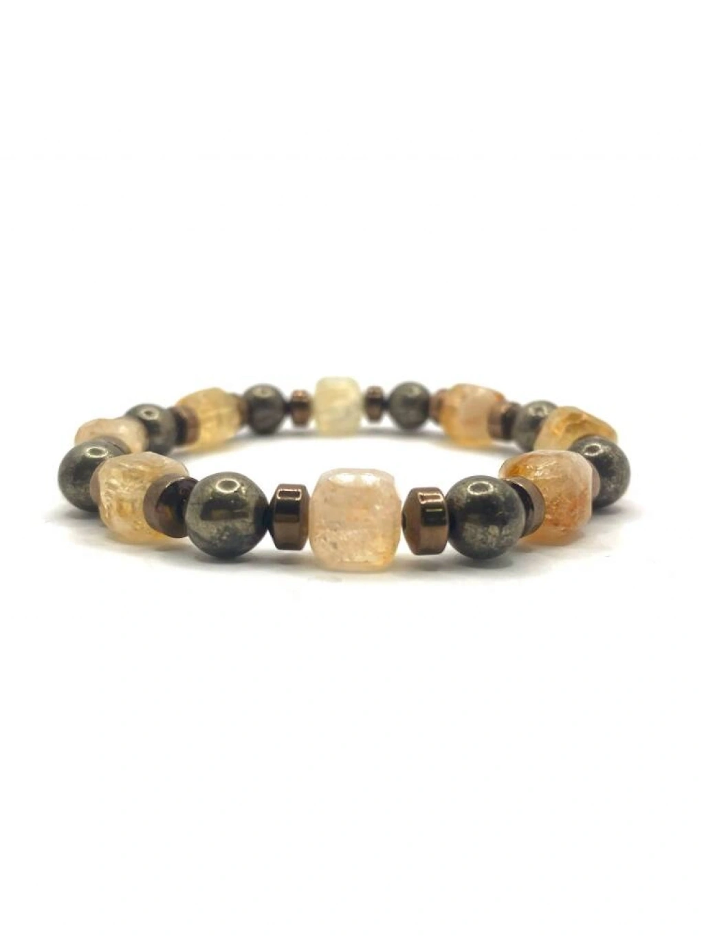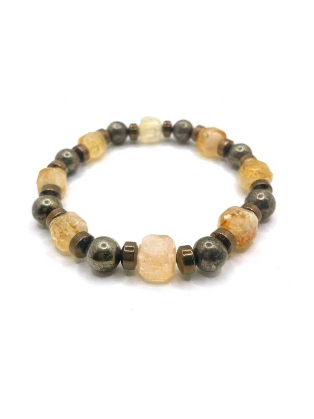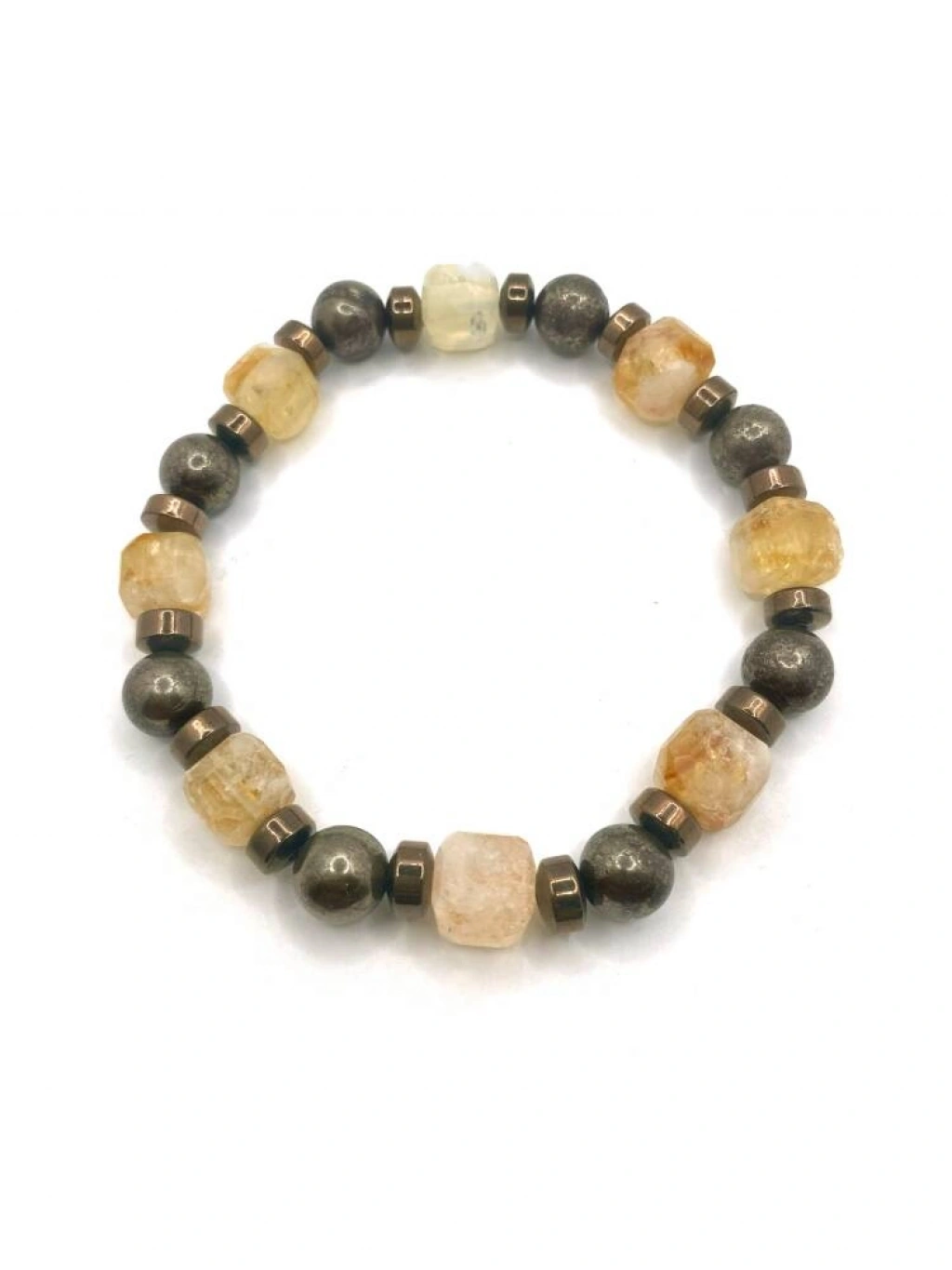 Sertifikalı Hakiki Orijinal 8mm Pirit - Sitrin - Hematit Doğal Taş Misinalı Bileklik