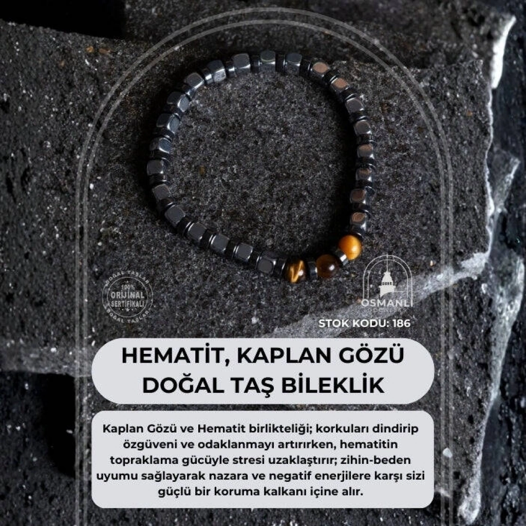 Hematit ve Kaplan Gözü Doğal Taş Bileklik (Misinalı) Gücünüzü mühürleyin, bakışlarınızı başarıya odaklayın! Topraklanmanın ve dayanıklılığın simgesi Hematit ile cesaretin ve şansın taşı Kaplan Gözü, esnek ve dayanıklı misina dizimiyle bu özel bileklikte buluştu. Bu tasarım; bir yandan sizi dış dünyanın karmaşasına karşı korurken, diğer yandan içsel gücünüzü ve motivasyonunuzu her an taze tutar. Bu Karizmatik İkilinin Şifalı Enerjisi Kaplan Gözü (Cesaret ve Koruma): 'Bağımsızlık Taşı' olarak bilinir. Korkuları dindirir, özgüveni artırır ve zihinsel odaklanmayı keskinleştirir. Nazara karşı koruyucu özellikleri olduğuna inanılır ve bolluğu hayatınıza çekmenize yardımcı olur. Hematit (Denge ve Topraklama): Vücuttaki statik elektriği ve stresi boşaltan en etkili taşlardandır. Zihin ve beden uyumunu sağlar, enerjinizi merkeze toplar ve negatif etkilere karşı bir kalkan oluşturarak kendinizi daha güçlü hissettirir. Güçlü Sinerji: Kaplan Gözü’nün ateşi ile Hematit’in metalik dengesi, taşıyıcısına hem kararlılık hem de sarsılmaz bir sükunet kazandırır. Tasarım ve Malzeme Özellikleri Gerçek Doğal Taşlar: Karakteristik altın sarısı hareleriyle parlayan birinci sınıf Kaplan Gözü ve ayna parlaklığında metalik Hematit taşları kullanılmıştır. Esnek ve Dayanıklı Misina: Yüksek kaliteli, kopmaya dayanıklı esnek misina üzerine dizilmiştir. Her bilek ölçüsüne kolayca uyum sağlar ve pratik kullanım sunar. Minimalist ve Güçlü Stil: Aparatsız, sadece doğal taşların saf dokusuna odaklanan bu tasarım, sadeliği ve gücü bir arada sunar. Maskülen ve Modern Görünüm: Özellikle saatlerle harika bir uyum yakalayan, hem erkek hem de kadın kullanıcılar için uygun (unisex) zamansız bir aksesuar. Neden Bu Bilekliği Seçmelisiniz? Odaklanma ve Disiplin: İş hayatında veya hedeflerinize giden yolda dikkat dağınıklığını önler, iradenizi güçlendirir. Konforlu Kullanım: Hafif yapısı ve esnek dizimi sayesinde gün boyu bileğinizde varlığını unutacağınız ama enerjisini hissedeceğiniz bir parçadır. Anlamlı Bir Hediye: Sevdiklerinize güç, şans ve sarsılmaz bir denge dilemenin en doğal yolu.