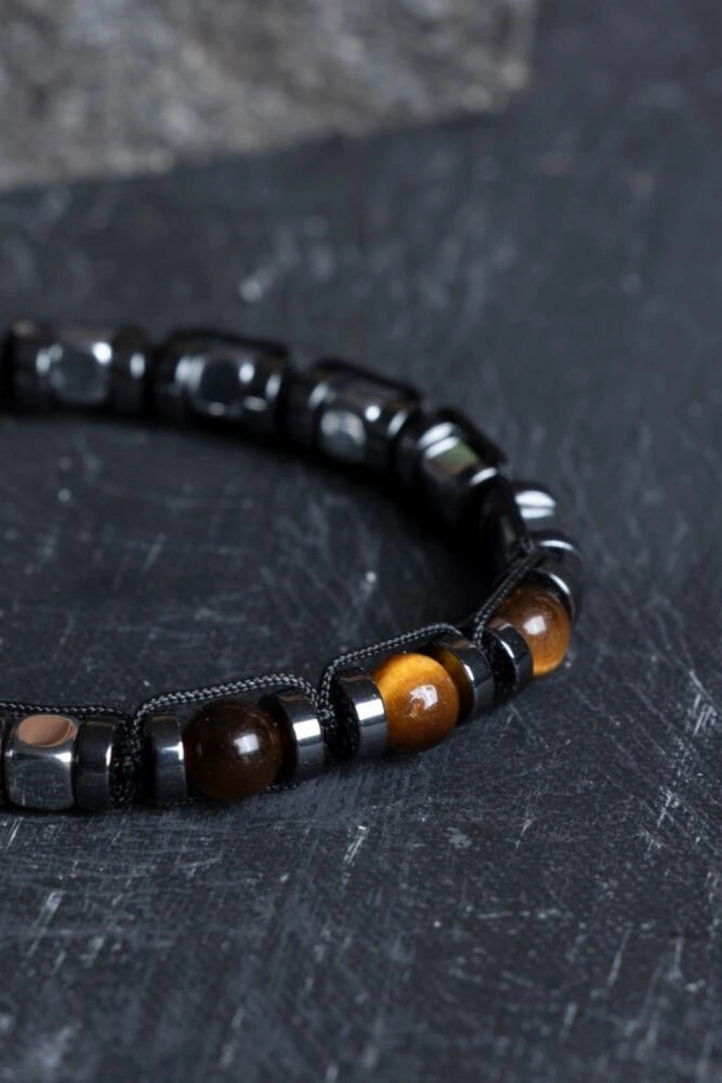 Hematit ve Kaplan Gözü Doğal Taş Makrome Bileklik Gücünüzü keşfedin, odağınızı koruyun, adımlarınızı güvenle atın! Doğanın en maskülen taşlarından olan metalik Hematit ve büyüleyici dokusuyla Kaplan Gözü, dayanıklı makrome örgüsüyle bu özel tasarımda bir araya geldi. Geleneksel el işçiliğini doğal taşların kadim enerjisiyle birleştiren bu bileklik, günlük şıklığınıza karizmatik bir dokunuş katar. Bu Güçlü İkilinin Enerji Rehberi Kaplan Gözü (Cesaret ve Özgüven): 'Bağımsızlık Taşı' olarak bilinir. Zihinsel odaklanmayı artırır, korkuları yatıştırır ve zor zamanlarda gereken cesareti sağlar. Nazara karşı koruyucu özellikleri olduğuna inanılır ve şans getirmesiyle tanınır. Hematit (Denge ve Topraklama): Zihin ve beden arasındaki uyumu sağlar. Vücuttaki statik elektriği ve stresi emerken, negatif enerjilere karşı adeta bir kalkan görevi görür. Kararlılığı artırır ve sizi daima merkezde tutar. Makrome Sanatı: El emeği ile hazırlanan ayarlanabilir makrome örgüsü, bilekliğe hem bohem bir hava katar hem de uzun ömürlü ve dayanıklı bir kullanım sunar. Tasarım ve Malzeme Özellikleri Gerçek Doğal Taşlar: Birinci sınıf parlaklığa sahip Hematit ve karakteristik ışık oyunlarıyla (chatoyancy) öne çıkan Kaplan Gözü taşları kullanılmıştır. Ayarlanabilir Form: Özel sürgülü makrome kapaması sayesinde her bilek ölçüsüne mükemmel uyum sağlar. Kolayca genişletilip daraltılabilir. Dayanıklı İp İşçiliği: Suya ve günlük kullanıma dayanıklı, kopma yapmayan yüksek kaliteli ip ile elde örülmüştür. Karizmatik Renk Paleti: Kaplan Gözü'nün sıcak kahve ve altın tonları ile Hematit'in soğuk metalik füme rengi, her tarzla uyumlu, zamansız bir kontrast oluşturur. Neden Bu Bilekliği Seçmelisiniz? Stres Savar ve Odaklayıcı: Özellikle yoğun iş temposunda veya stresli dönemlerde sakin kalmanıza ve hedeflerinize odaklanmanıza yardımcı olur. Unisex ve Karizmatik: Hem kadınlar hem de erkekler için uygun, saatlerle harika kombinlenebilen güçlü bir duruş. Anlamlı Bir Hediye: Sevdiklerinize güç, koruma ve kararlılık dilemenin en doğal ve dayanıklı yolu.
