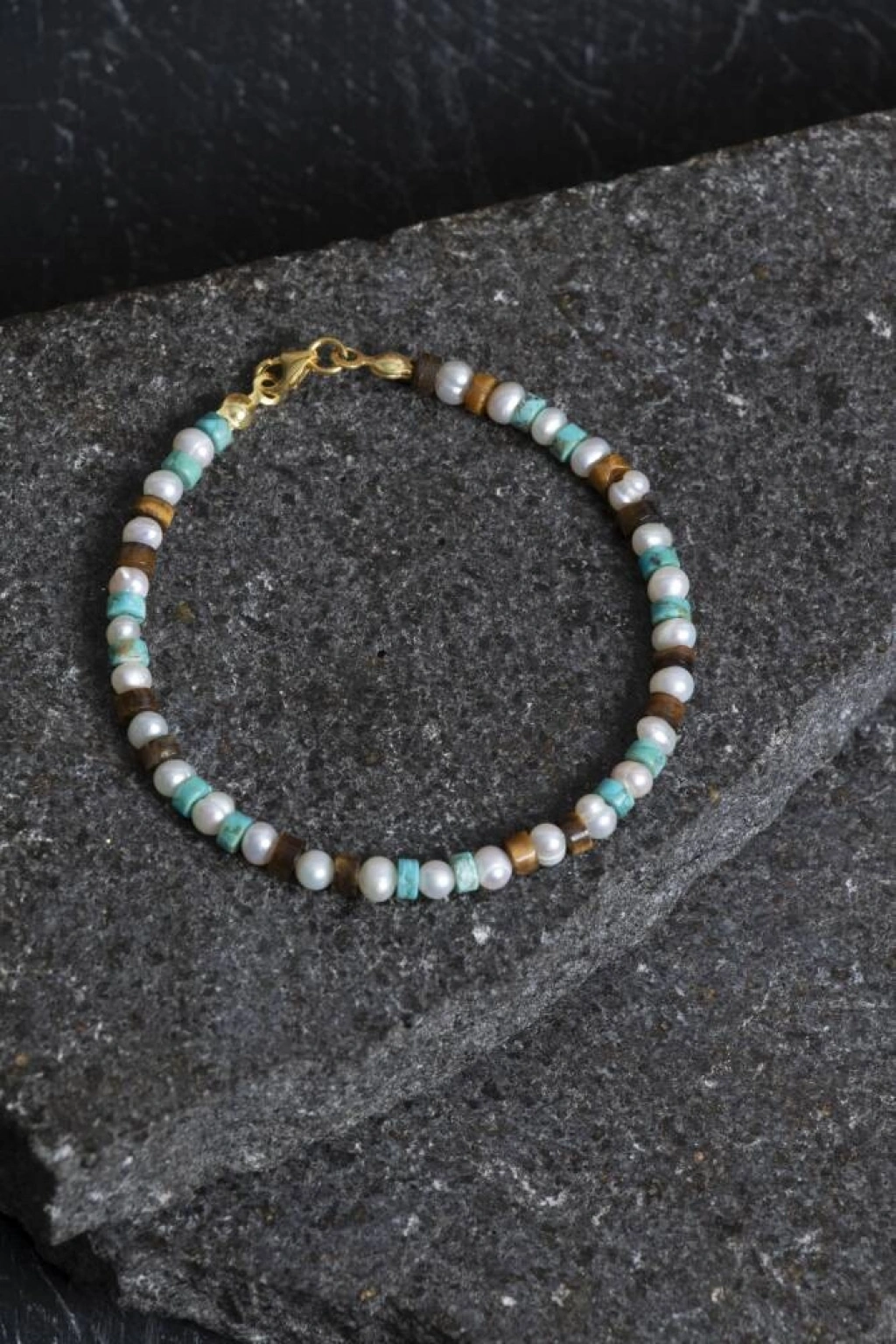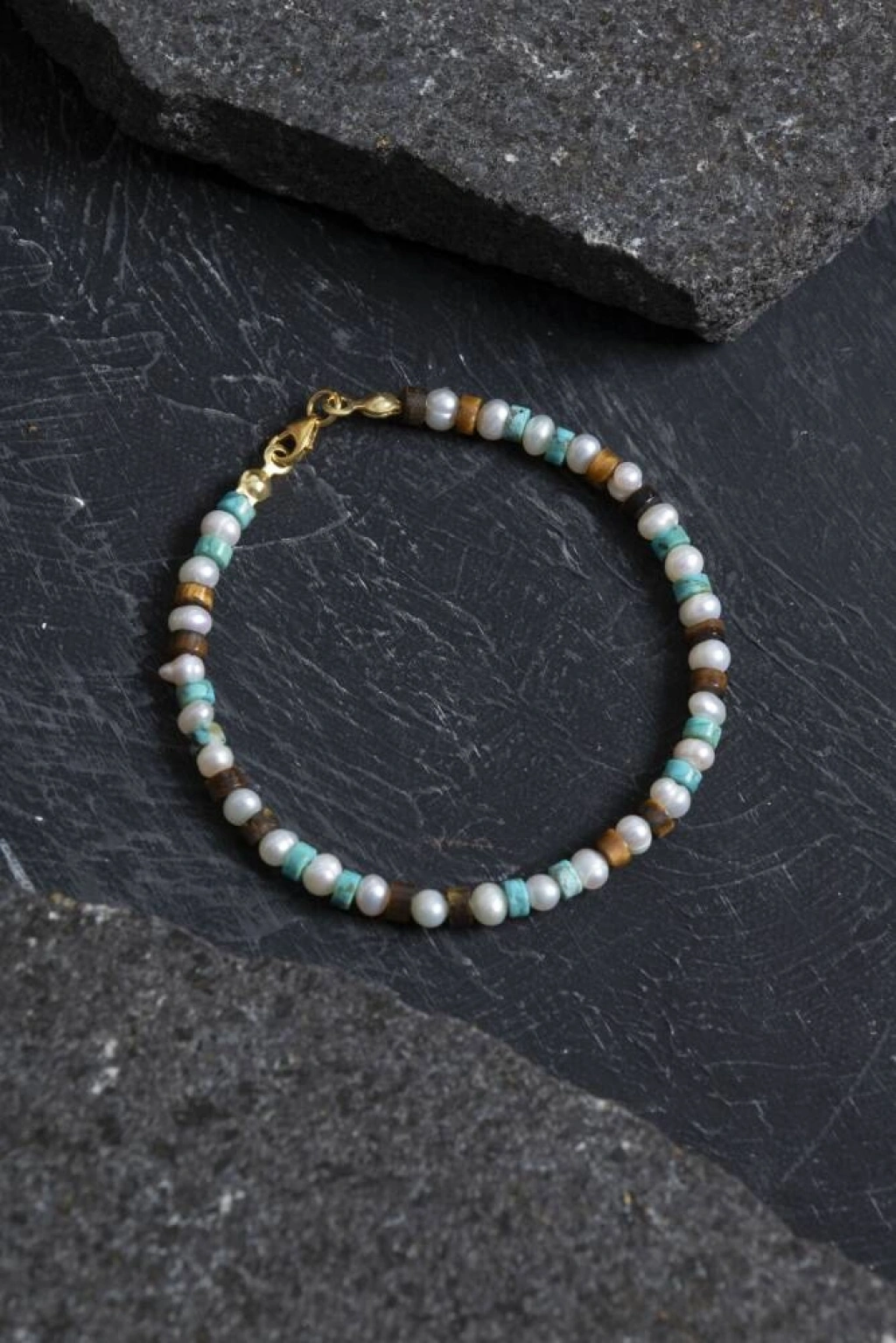 Zarafet, güç ve içsel huzur bu özel bileklikte bir araya geliyor. İnci, saf enerjisiyle duygusal denge sağlar ve zarafeti simgeler. Kaplan Gözü, cesaret ve özgüven verirken, kararlılıkla ilerlemenize destek olur. Turkuaz, negatif enerjilere karşı güçlü bir koruma sunar ve iletişimi güçlendirir. El işçiliğiyle hazırlanmış bu tasarım, gerçek gümüş kapama detayıyla tamamlanmıştır. Her taş, sertifikalı ve tamamen doğal kaynaklardan özenle seçilmiştir. ✨ Öne Çıkan Özellikler: Sertifikalı doğal İnci, Kaplan Gözü ve Turkuaz taşları Özel tasarım ve gerçek gümüş kapama Koruma, cesaret, zarafet ve duygusal denge etkileri El yapımı, unisex ve zamansız tasarım Günlük kullanım ve anlamlı bir hediye için ideal Hem şıklığınızı tamamlar hem enerjinizi dengeler. Bu bileklik; doğallık, asalet ve gücün bileğinizde hayat bulmuş halidir.