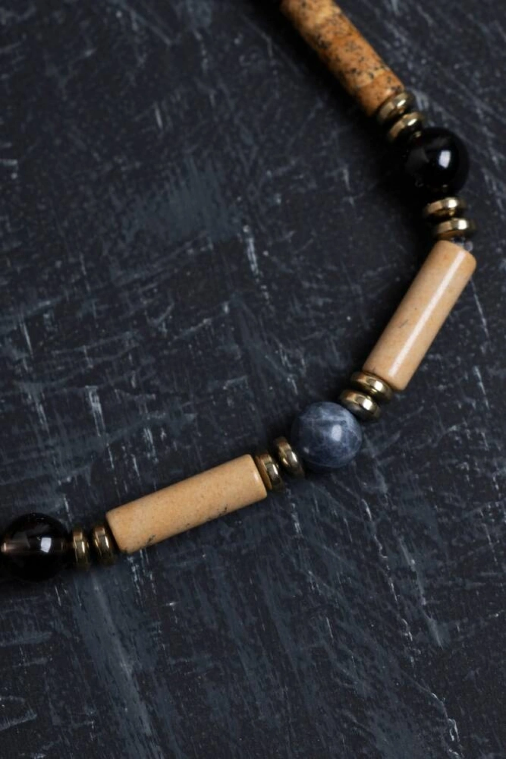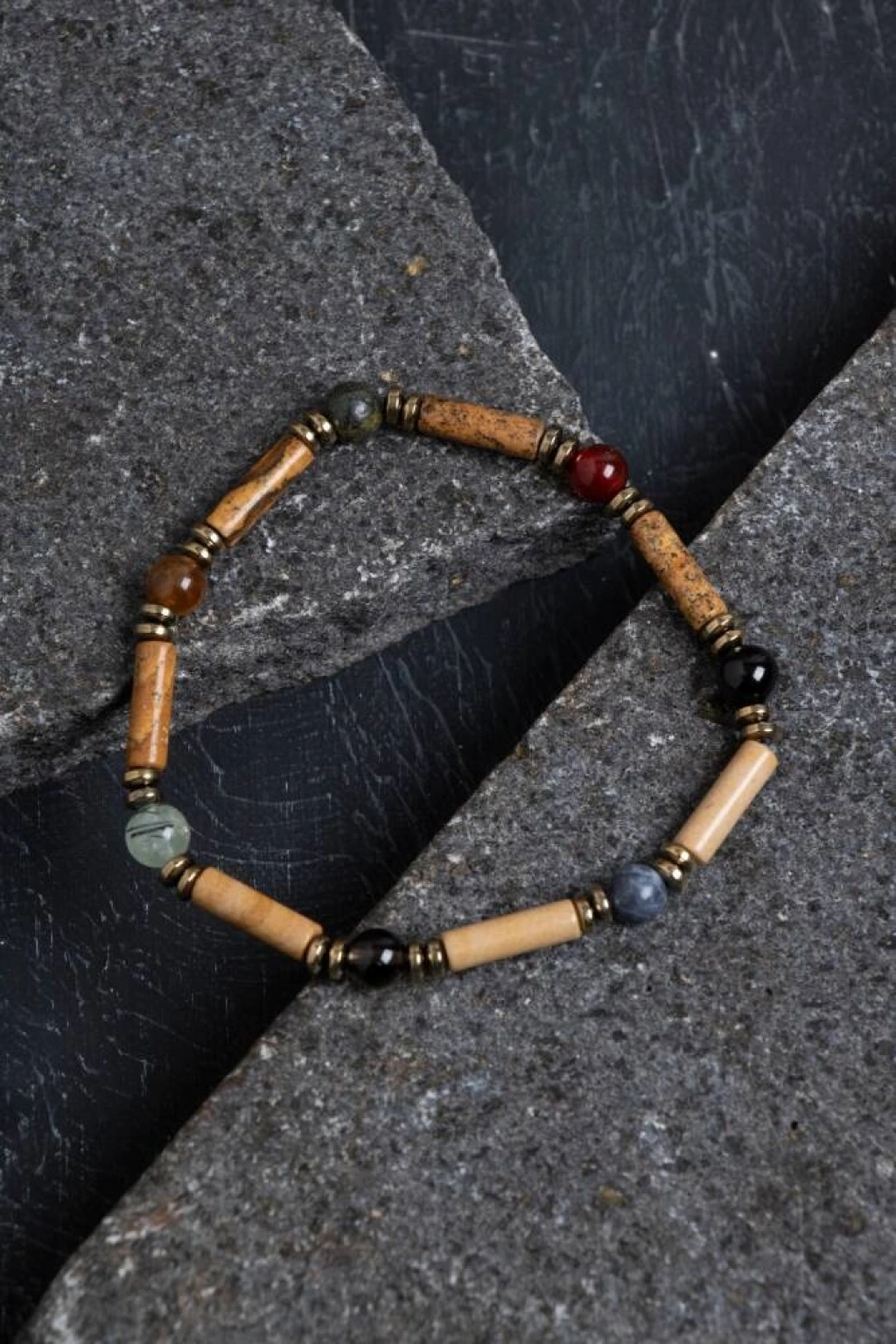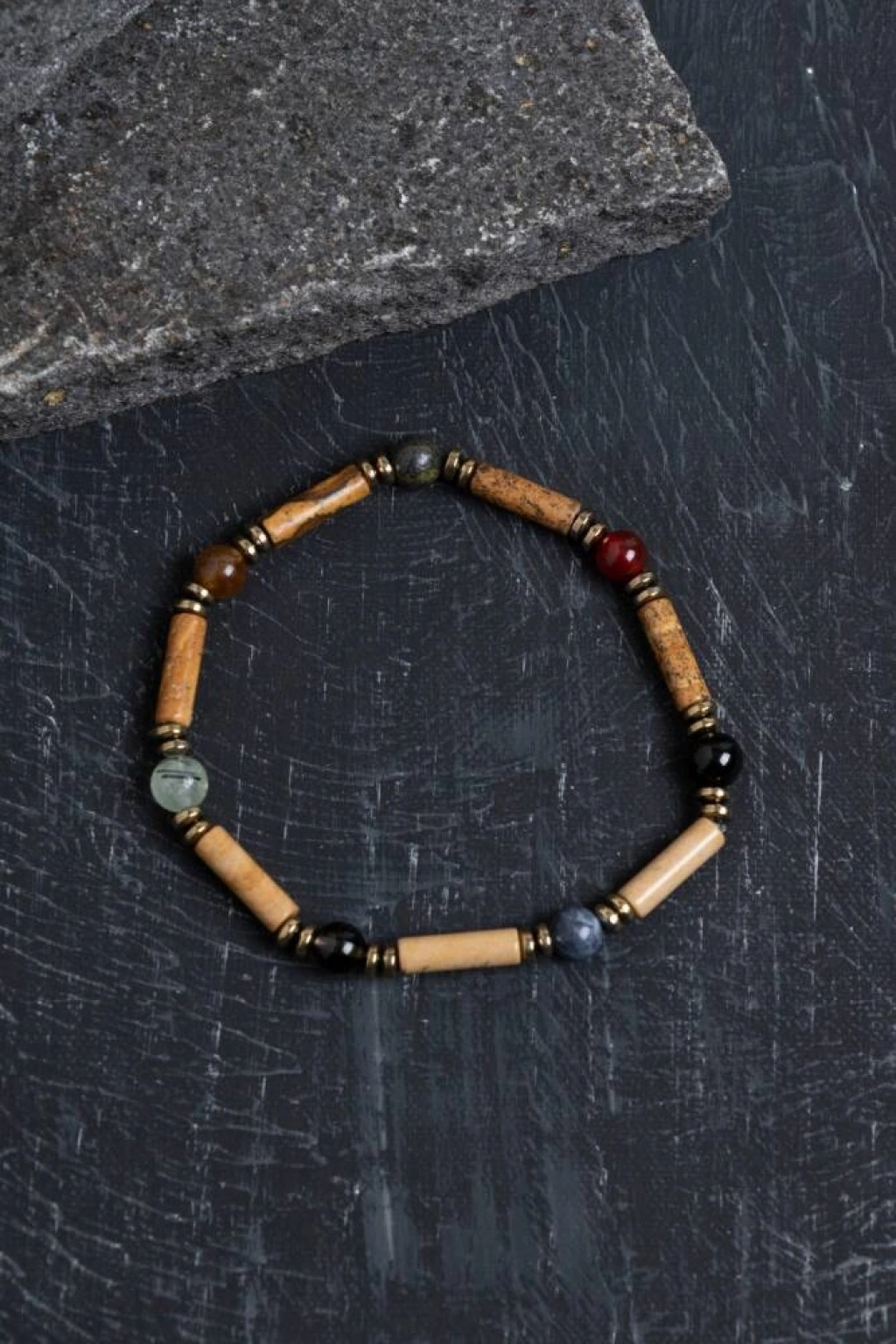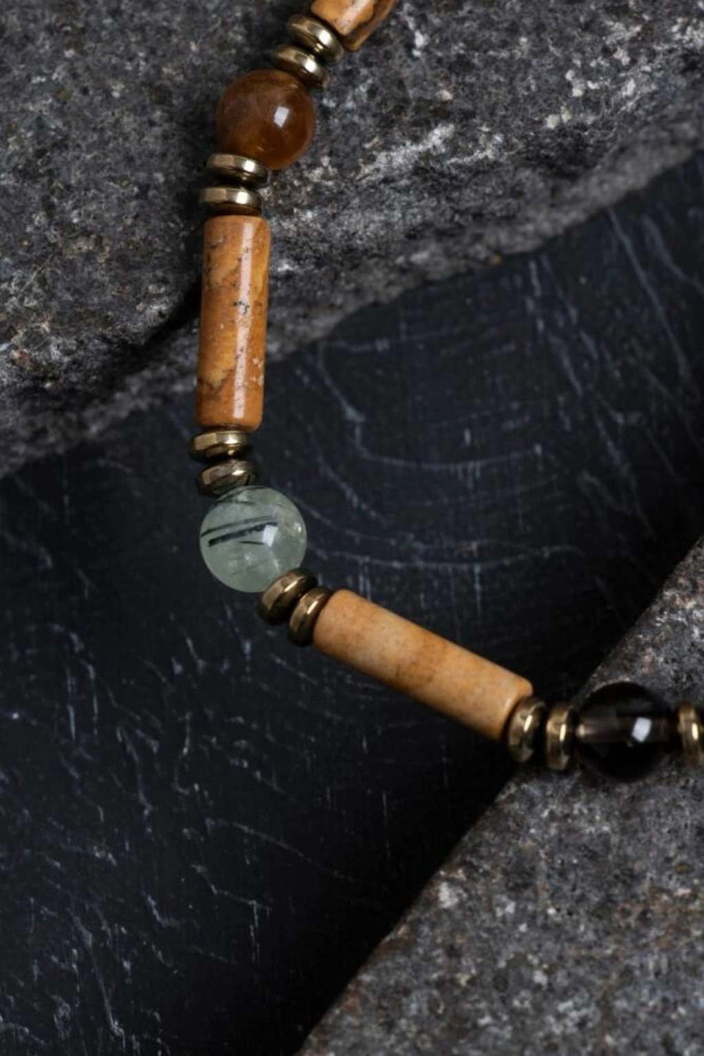 Topraklanma ve güç arayan Oğlak burcu için özel olarak tasarlanan bu bileklik, dayanıklılığı ve ruhsal dengeyi destekleyen taşlardan oluşur. Jasper: Güç ve kararlılık taşıdır, fiziksel dayanıklılığı artırır. Sodalit: Zihinsel netlik ve iç huzur sağlar. Dumanlı Kuvars: Negatif enerjileri emer ve ruhsal temizlik yapar. Hematit: Topraklama sağlar, odaklanmayı artırır. Prehnit: Sezgileri güçlendirir, kalp merkezli kararlar almayı kolaylaştırır. Akik: Stresi azaltır, pozitif enerji verir. Turmalin: Elektromanyetik koruma sağlar, negatif enerjilerden arındırır. Tüm taşlar sertifikalı doğal taşlardan oluşmaktadır. Oğlak burçlarının içsel gücünü ve istikrarını desteklemek için ideal bir seçimdir.