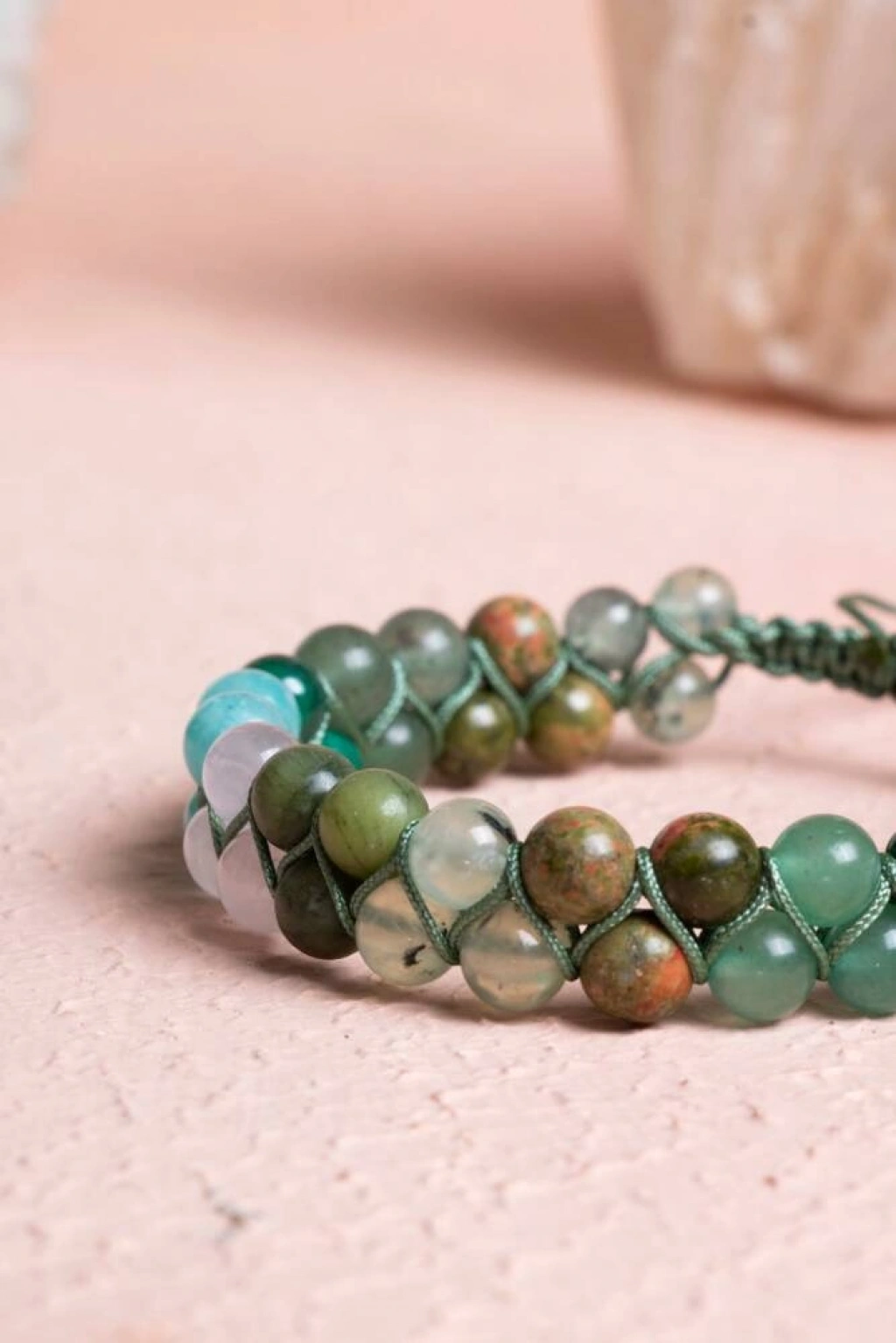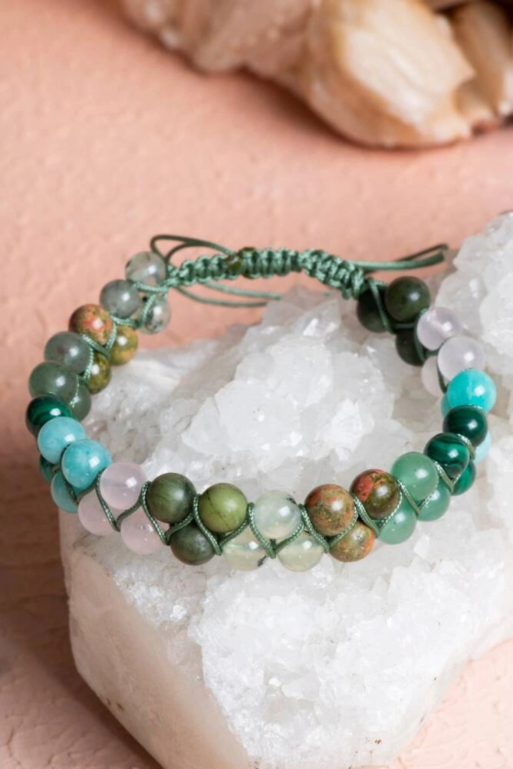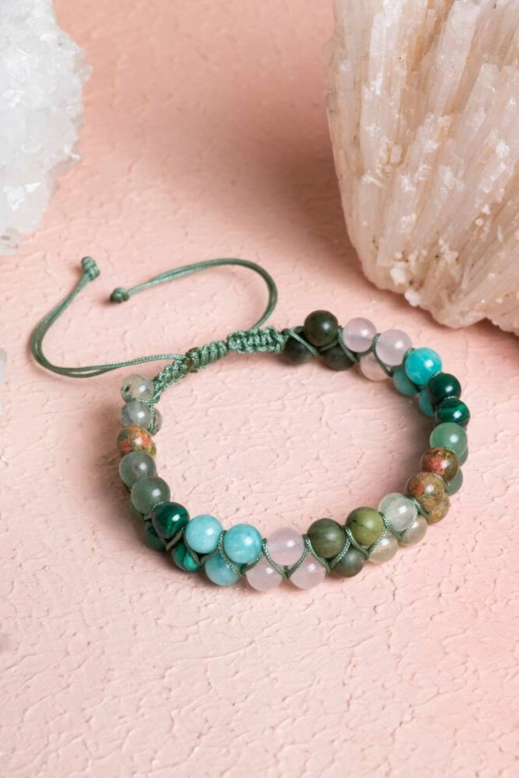 Sevgi, şefkat ve bağışlama… Kalp Çakrası'nın enerjisini dengeleyen bu özel çift sıra makrome bileklik, sevgi dolu bir yaşam ve duygusal şifa arayanlar için özenle seçilmiş taşlarla tasarlandı. Bileklik, kalp çakrasını açarak koşulsuz sevgiyi, huzuru ve uyumu destekleyen %100 doğal ve sertifikalı Yeşim, Pembe Kuvars, Amazonit, Malahit, Yeşil Aventurin, Unakit ve Prehnit (6mm) taşları ile elde örüldü. Bu taşların birleşimi, kendinize ve başkalarına karşı daha sevgi dolu ve şefkatli olmanıza yardımcı olur. Taşların Enerjisi: Yeşim: Bilgelik, huzur ve uyum getirir; pozitif enerjiyi çeker. Pembe Kuvars: Koşulsuz sevgi, şefkat ve duygusal huzur verir; kalp çakrasını açar. Amazonit: Duygusal travmaları sakinleştirir ve içsel dengeyi sağlar. Malahit: Kalp çakrasını temizler, dönüşümü ve duygusal şifayı destekler. Yeşil Aventurin: Kalbi açar, duygusal rahatlık ve şans getirir. Unakit: Duygusal şifayı ve dengeyi sağlar; geçmişten gelen duygusal yükleri hafifletir. Prehnit: İçsel huzur, sezgi ve koşulsuz sevgi enerjisi verir. Öne Çıkan Özellikler: %100 doğal ve sertifikalı 6mm doğal taşlar. Kalp Çakrasını dengelemeye odaklı özel taş kombinasyonu. Çift sıra zarif makrome tasarım. El işçiliği, dayanıklı ve şık kullanım. Hem ruhsal denge hem estetik bir görünüm sunar. Bu bileklik, sadece bir aksesuar değil; kalbinizin kapılarını sevgiye açmanızı ve duygusal şifa bulmanızı destekleyen özel bir semboldür.
