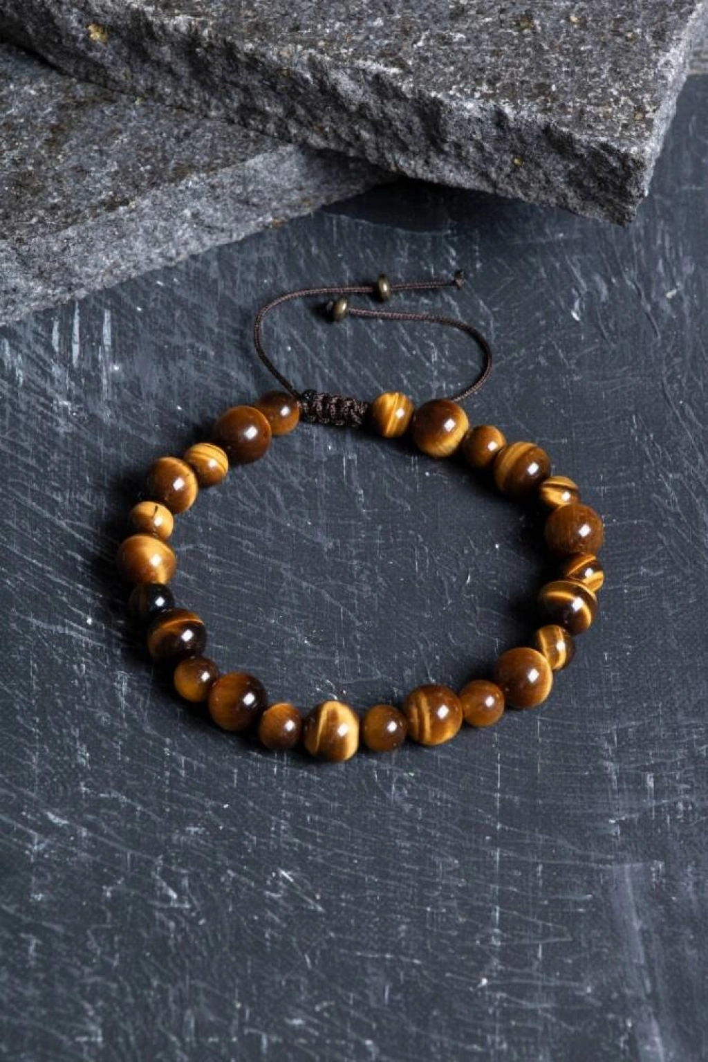 Kaplan Gözü Doğal Taş Makrome Bileklik (6-8 mm) Gücünüzü harelerin ışıltısıyla sergileyin, cesaretinizi bileğinizde taşıyın! Doğanın en karakteristik taşlarından biri olan Kaplan Gözü, farklı boyutlardaki taşların ritmik uyumu ve dayanıklı makrome örgüsüyle bu özel tasarımda buluştu. 'Bağımsızlık ve Güç' taşı olarak bilinen Kaplan Gözü, kendine has altın sarısı ve kahverengi yansımalarıyla size hem spiritüel bir koruma hem de zamansız bir şıklık sunuyor. Kaplan Gözü Taşının Cesaret Veren Enerjisi Cesaret ve Özgüven: Kişinin kendi potansiyelini fark etmesini sağlar, korkuları yatıştırır ve zorlu durumlarda gereken irade gücünü artırır. Odaklanma ve Zihinsel Netlik: Dikkat dağınıklığını önler, zihni berraklaştırarak doğru kararlar almanıza yardımcı olur. Koruyucu Kalkan: Geleneksel olarak nazara ve negatif enerjilere karşı en etkili koruyucu taşlardan biri kabul edilir. Bolluk ve Şans: Parayı ve iyi şansı hayatınıza çektiğine inanılan 'başarı' taşlarından biridir. Tasarım ve Malzeme Özellikleri A Kalite Kaplan Gözü Taşları: Hareleri belirgin, yüksek kaliteli 6 mm ve 8 mm boyutundaki orijinal taşların estetik birleşimiyle üretilmiştir. Hareketli ve Dinamik Görünüm: Farklı taş boyutlarının (6-8 mm) bir arada kullanılması, tasarıma modern ve alışılmışın dışında bir derinlik katar. Ayarlanabilir Makrome Kapama: El emeği sürgülü makrome yapısı sayesinde her bilek ölçüsüne tam uyum sağlar. Kolayca genişletilip daraltılabilir. Dayanıklı El İşçiliği: Suya, tere ve günlük kullanıma dayanıklı, yüksek kaliteli paraşüt ipiyle titizlikle örülmüştür. Neden Bu Bilekliği Seçmelisiniz? Günlük Şıklık ve Enerji: Hem spor kıyafetlerle hem de saatlerinizle mükemmel uyum sağlayan, unisex bir modeldir. Boyutların Uyumu: 6 mm'nin zarafeti ile 8 mm'nin iddialı duruşu, bileğinizde dengeli bir görsel şölen oluşturur. Anlamlı Bir Hediye: Sevdiklerine 'güçlü ol, cesur ol ve şansın açık olsun' demenin en doğal ve şık yolu.