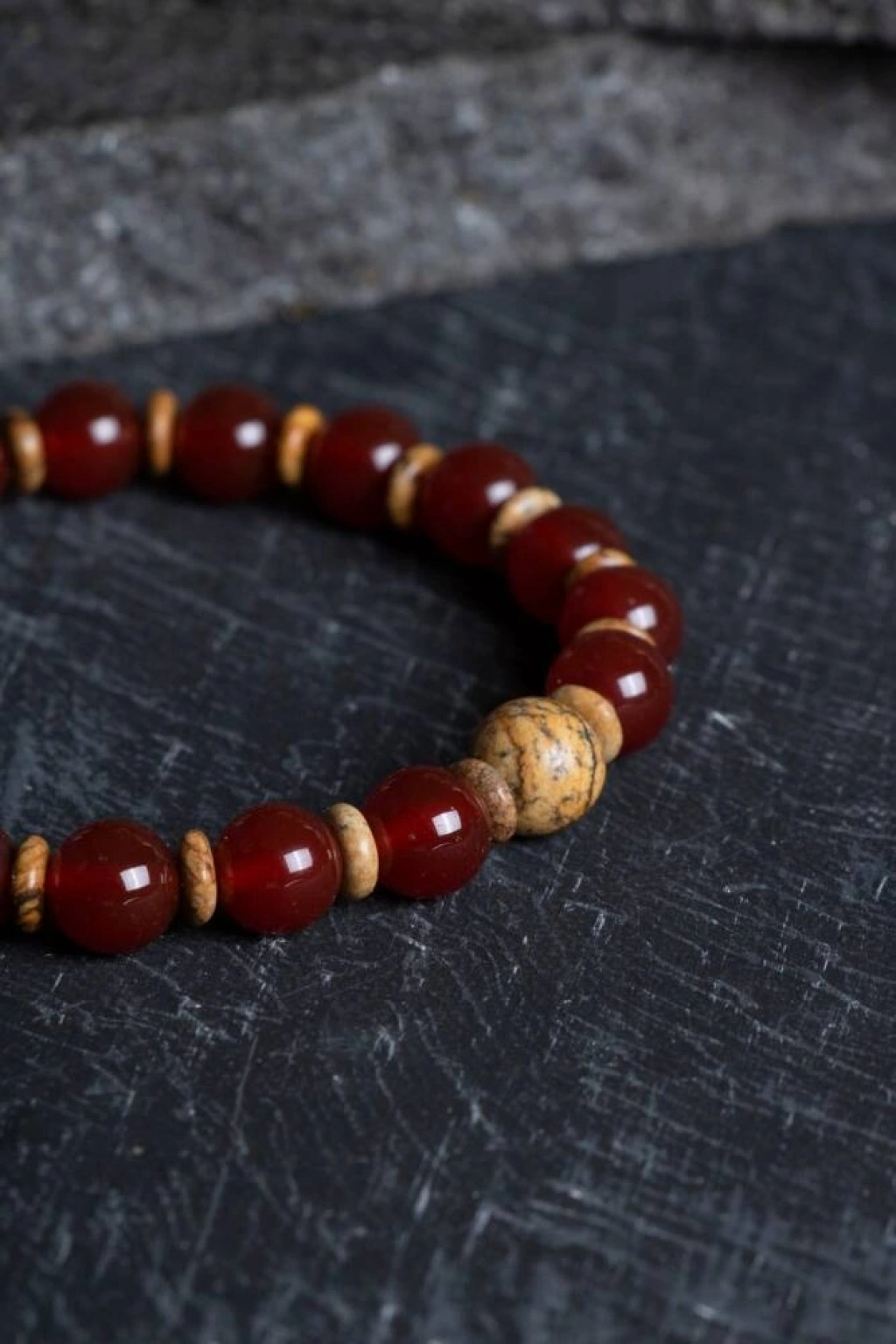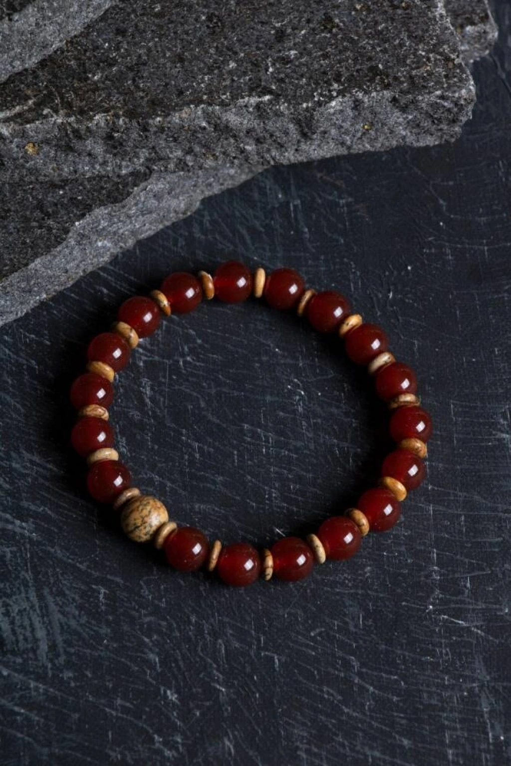 Kırmızı Akik ve Odun Jasper Doğal Taş Bileklik (Misinalı) Yaşam ateşinizi uyandırın, toprağın sabrıyla güçlenin! Canlılığın, cesaretin ve korunmanın sembolü Kırmızı Akik ile milyonlarca yıllık doğa tarihini ruhunda barındıran Odun Jasper, bu özel tasarımda bir araya geldi. Yüksek kaliteli esnek misinası sayesinde bileğinizi kusursuzca kavrayan bu bileklik, size hem fiziksel bir dinamizm kazandırır hem de hayatın karmaşası içinde bir ağaç gibi köklü ve sarsılmaz hissetmenize yardımcı olur. Bu Güçlü İkilinin Enerji Rehberi Kırmızı Akik (Canlılık ve Koruma): 'Azim Taşı' olarak bilinir. Taşıyıcısına cesaret verir, özgüveni artırır ve yaşama sevincini ateşler. Negatif enerjilere karşı güçlü bir bariyer oluştururken, kan dolaşımını ve fiziksel enerjiyi dengelediğine inanılır. Odun Jasper (Kökleşme ve İstikrar): Fosilleşmiş ağaç dokusuyla geçmişin bilgeliğini taşır. Zihni sakinleştirir, sabrı artırır ve stresi toprağa iletir. Kararlılığı pekiştirerek hedeflerinize odaklanmanızı ve her koşulda dengede kalmanızı sağlar. Tasarım ve Malzeme Detayları %100 Orijinal Doğal Taşlar: Birinci sınıf kalitede, yüksek frekanslı Kırmızı Akik ve karakteristik ahşapsı desenleriyle her biri eşsiz olan Odun Jasper taşları. Esnek ve Dayanıklı Misina: Özel yüksek mukavemetli elastik misinası sayesinde kolayca takılıp çıkarılabilir, her bilek ölçüsüne konforlu bir şekilde uyum sağlar. Sıcak Toprak Tonları: Akik taşının derin kırmızı-turuncu yansımaları ile Jasper’ın doğal kahve, krem ve toprak renkleri, doğanın en ham ve güçlü estetiğini bileğinize taşır. Unisex ve Minimalist: Hem kadınların hem de erkeklerin tarzına hitap eden, saatinizle veya diğer takılarınızla mükemmel kombinlenen zamansız bir parça. Neden Bu Bilekliği Seçmelisiniz? Eylem ve Denge Sinerjisi: Kırmızı Akik sizi harekete geçmeye teşvik ederken, Odun Jasper bu enerjiyi doğru yönetmeniz için gereken sabrı ve sükuneti verir. Günlük Enerji Desteği: Yoğun iş temposunda veya stresli anlarda kendinizi daha güçlü, odaklanmış ve korunmuş hissetmek için idealdir. Anlamlı Bir Hediye: Sevdiklerinize içsel güç, dayanıklılık ve yaşama sevinci dilemenin en doğal yolu.