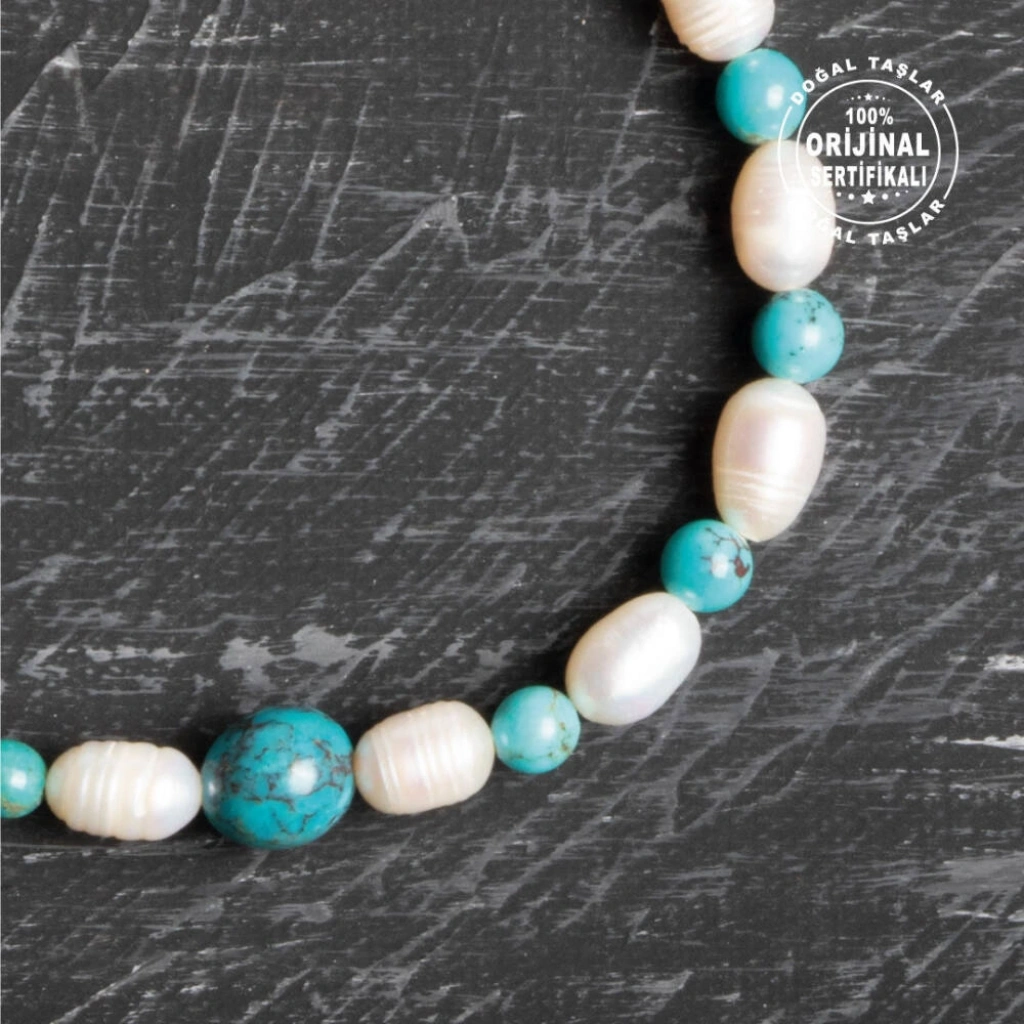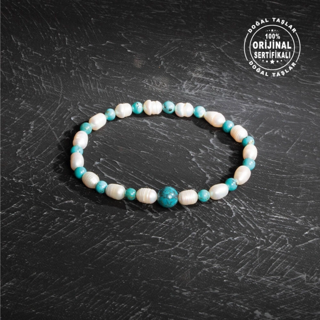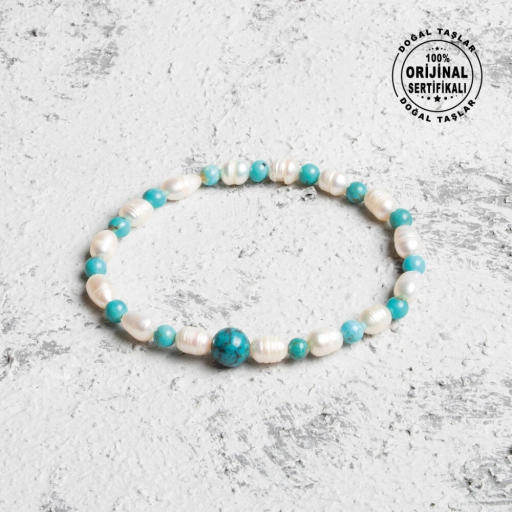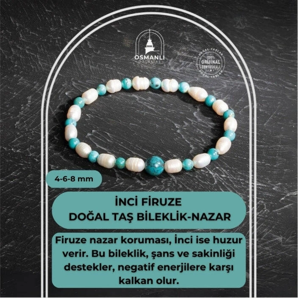 Osmanlı Doğal Taş markasının kaliteli işçiliğiyle hazırlanan bu eşsiz bileklik, inci ve firuze taşlarının uyumunu bileğinize taşıyor. Her bir inci taşı 3 4 mm, firuze taşları ise 4 mm çapında olup bilekliğe zarif bir görünüm katıyor. Ortada Bulunan büyük firuze taşı 8mm'dir. 16-21 cm arası beden seçenekleriyle sunulan bu bileklik, her bileğe uygun ölçüde sipariş edilebilir. Bileğinizin ölçüsünü alarak ideal bedeni seçebilirsiniz. Ayrıca, her bileklik orijinalliğini garanti altına alan sertifikası ile gönderilir, böylece kalite ve güven sağlanır. İnci ve Firuze Taşlarının Faydaları: İnci Taşı: İnci, saflık ve huzur enerjisiyle bilinir. Duygusal dengeyi sağlamaya yardımcı olur ve aynı zamanda cilde olumlu etkileri ile tanınır. Firuze Taşı: Firuze, koruyucu ve şifalı özellikleriyle öne çıkar. Stresi azaltarak ruhsal denge sağlar ve pozitif enerjiyi destekler. Bu ince işçilikle hazırlanmış inci ve firuze bileklik, günlük yaşamınıza hem estetik bir dokunuş hem de enerjik bir destek sunar. Osmanlı Doğal Taş’ın özenle ürettiği bu bileklik, ruhsal dengenizi korumak ve stilinize zarif bir dokunuş katmak isteyenler için ideal bir seçenektir. Sertifikalı bu bilekliğinizle hem enerjinizi hem de görünümünüzü dengeleyin!