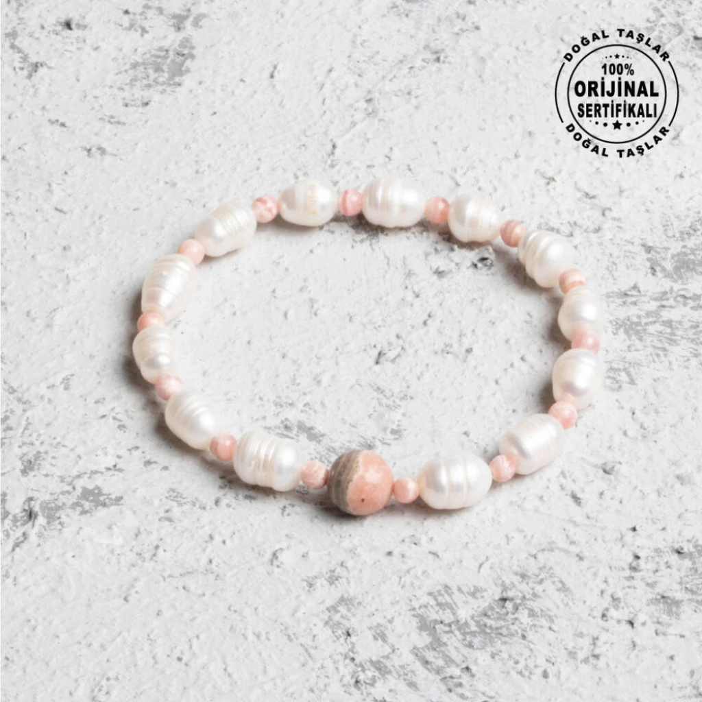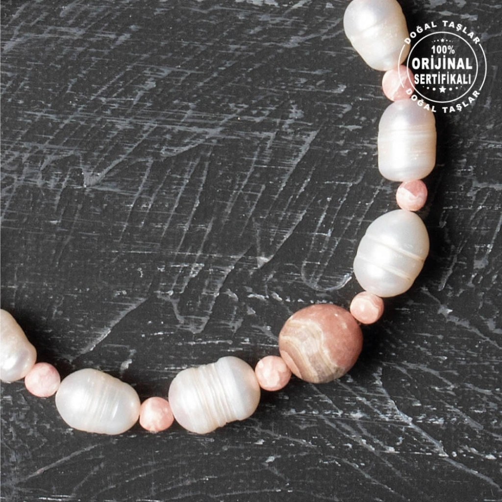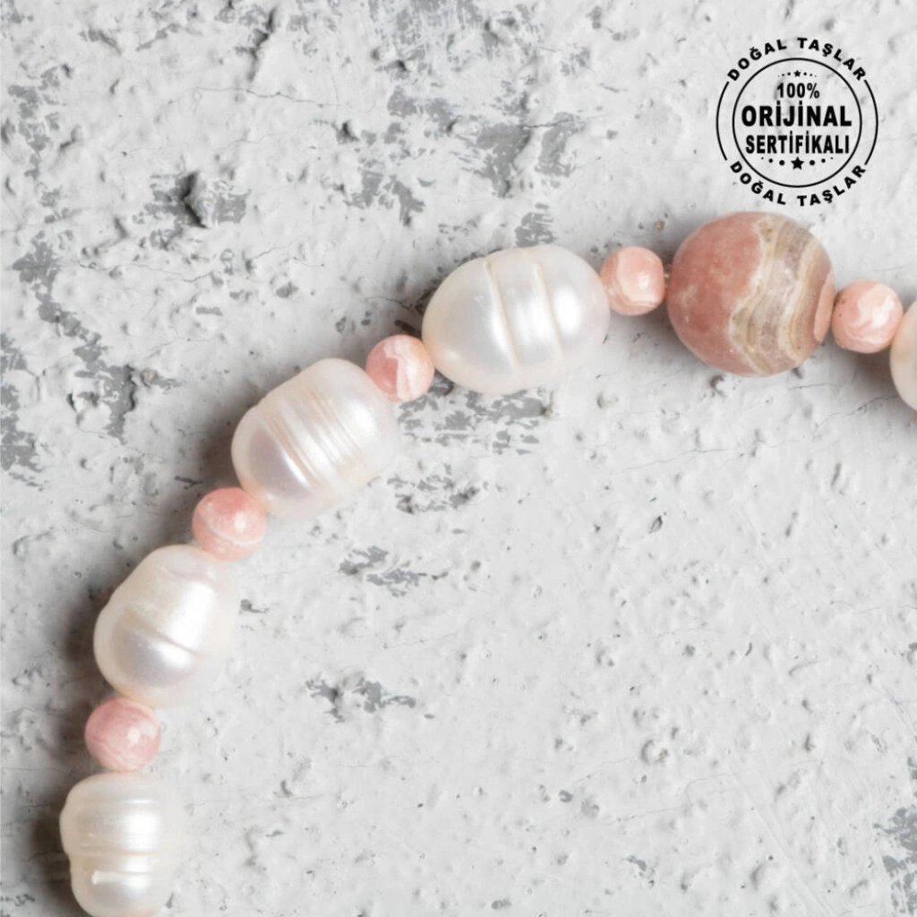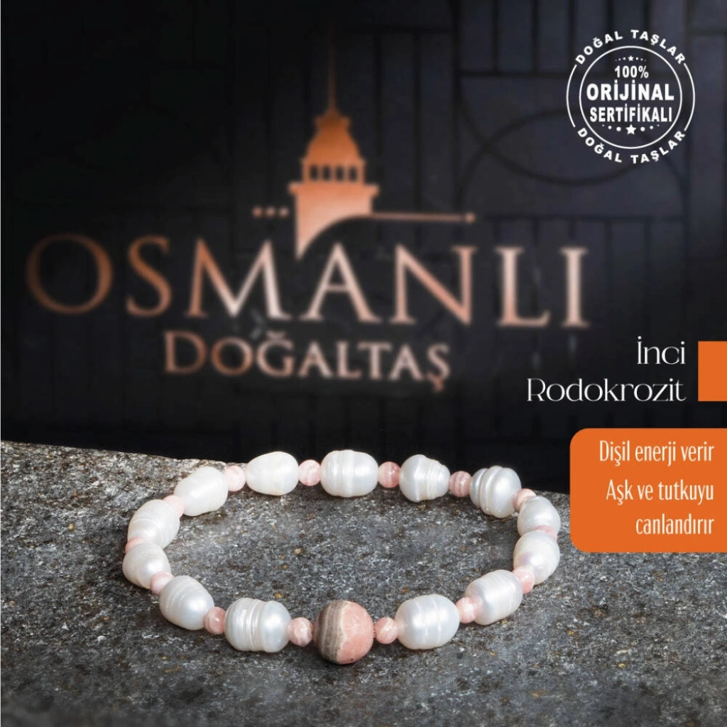 Osmanlı Doğal Taş markasının ustalığıyla üretilmiş, tamamen doğal inci ve rodokrozit taşlarının bir araya geldiği bu zarif bileklik, şıklık ve ruhsal denge arayanlar için mükemmel bir seçenektir. 16-21 cm arası beden seçenekleri ile her bileğe uyum sağlar; bileğinizi ölçerek en uygun bedeni sipariş verebilirsiniz. Bileklik, orijinalliğini garanti altına alan sertifikası ile birlikte gönderilmektedir, bu sayede kalite ve güven sunar. Bu özel tasarım bileklikte kullanılan inciler 7-8 mm çapında olup, rodokrozit taşları ise 4 mm ve 8 mm ölçülerinde, farklı boyutlarda işlenmiştir. Bu ölçüler bilekliğe estetik bir denge katarak zarif bir görünüm sağlar. İnci ve Rodokrozit Taşlarının Faydaları: İnci Taşı: İnci, saflık ve içsel huzur ile ilişkilidir. Duygusal dengeyi desteklerken zarafeti ile ruhunuza hitap eder ve aynı zamanda cilde olumlu etkileri ile tanınır. Rodokrozit Taşı: Rodokrozit, sevgi ve içsel şifa enerjisiyle bilinir. Kalbi sakinleştirir, stresi azaltır ve pozitif bir ruh hali sağlar. İnci ve rodokrozitin eşsiz uyumunu taşıyan bu bileklik, Osmanlı mirasını modern bir dokunuşla sunar. Günlük hayatınıza hem enerjik bir destek hem de estetik bir zarafet katan bu aksesuar, Osmanlı Doğal Taş güvencesi ile sizlere sunulmaktadır. Hem ruhsal dengeyi koruyan hem de şıklık katan sertifikalı bu bilekliğinizle stilinizi tamamlayın!