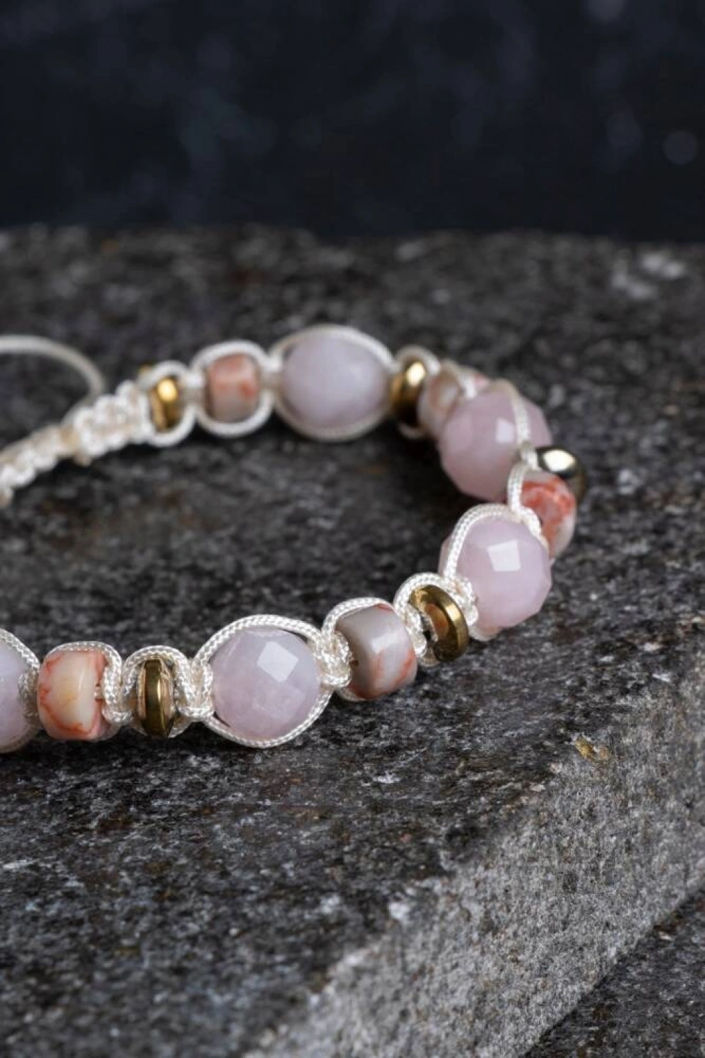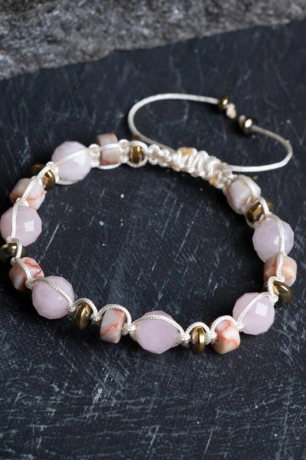 Pembe Kuvars, Jasper ve Hematit Doğal Taş Makrome Bileklik Kalbinizi sevgiye açın, ruhunuzu doğayla dengeleyin! Pembe Kuvars’ın yumuşak enerjisi, Jasper’ın köklendirici bilgeliği ve Hematit’in koruyucu gücü, usta ellerde örülen Makrome işçiliğiyle bu eşsiz bileklikte buluştu. Hem pastel tonların zarafetini hem de toprak ananın sarsılmaz gücünü taşıyan bu tasarım, size her an huzur ve güven aşılamak için hazırlandı. Bu Özel Üçlünün Büyüleyici Enerjisi Pembe Kuvars (Aşk ve Özsevgi): 'Kalp Taşı' olarak bilinir. Koşulsuz sevgiyi çeker, duygusal yaraları sarar ve kişinin kendisine olan şefkatini artırarak içsel barış sağlar. Jasper (Sabır ve İstikrar): 'Yüce Besleyici' olarak adlandırılan Jasper, zor zamanlarda destek ve sükunet sağlar. Kararlılığı pekiştirir ve bedeni negatif enerjilerden arındırarak topraklanma sağlar. Hematit (Denge ve Koruma): Zihinsel karmaşayı gideren en güçlü topraklama taşlarındandır. Stresi vücuttan uzaklaştırır ve sizi dış negatif etkenlere karşı koruyan bir kalkan görevi görür. Tasarım ve İşçilik Detayları El İşçiliği Makrome: Dayanıklı, kaliteli ve cilde dost iplerle özenle örülmüştür. Her düğümde el emeğinin sıcaklığını ve doğal taşların saf şifasını barındırır. Ayarlanabilir Yapı: Sürgülü (asansörlü) kapama sistemi sayesinde tüm bilek ölçülerine kusursuz uyum sağlar; takıp çıkarması son derece kolaydır. Estetik Renk Uyumu: Pembe Kuvars’ın romantik tonları, Jasper’ın doğal desenleri ve Hematit’in metalik parıltısı, her tarzla uyum sağlayacak asil bir görünüm sunar. Konforlu Kullanım: Hafif tasarımı ve taşların pürüzsüz dokusu sayesinde gün boyu bileğinizde bir ağırlık hissetmeden, enerjisini hissederek kullanabilirsiniz. Neden Bu Bilekliği Seçmelisiniz? Duygusal Denge: Kendinizi huzurlu, güvende ve dengede hissetmek istediğiniz anlarda en iyi enerji arkadaşınızdır. Zarif ve Güçlü Stil: Hem naif hem de güçlü bir duruş sergileyen bu bileklik, saatinizle veya diğer takılarınızla mükemmel bir uyum yakalar. Anlamlı Bir Hediye: Sevdiklerinize sevgi, güç ve içsel huzur dilemek için sunabileceğiniz en özel ve enerjisi yüksek hediye seçeneklerinden biridir.