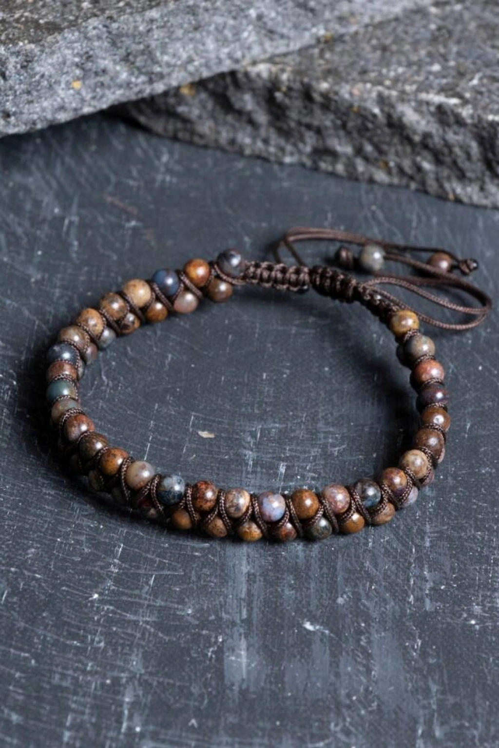 Pitersit Doğal Taş Çift Sıra Makrome Bileklik (3-4 mm) Zarafetin gücüyle tanışın, fırtınanın enerjisini çift sıra şıklığıyla taşıyın! Doğal taş dünyasının 'nadir mücevheri' olarak bilinen Pitersit, mikro boyuttaki taşların çift sıra dizimi ve titiz makrome işçiliğiyle bu özel tasarımda hayat buldu. 'Fırtına Taşı'nın altın, mavi ve antrasit renkli büyüleyici hareleri, el emeği düğümlerle birleşerek hem bohem hem de son derece lüks bir duruş sergiliyor. Çift Sıra Pitersit ve Makromenin Eşsiz Sinerjisi Maksimum Enerji, Zarif Form: 3-4 mm'lik taşların çift sıra kullanılması, Pitersit'in 'değişim ve dönüşüm' enerjisini daha yoğun hissetmenizi sağlarken, bileğinizde dolgun ve estetik bir görünüm oluşturur. Fırtınanın Rehberliği: Hayatın karmaşık dönemlerinde zihinsel netlik sağlar. Kaosu düzene sokan enerjisiyle, kararlarınızı daha kararlı ve sezgisel bir şekilde almanıza yardımcı olur. El Emeği Makrome Sanatı: Dayanıklı iplerle elde örülen makrome dokusu, bilekliğe tamamen 'butik' bir hava katar. Her düğüm, taşın doğal güzelliğini korumak ve ön plana çıkarmak için titizlikle atılmıştır. Sezgi ve Farkındalık: Üçüncü gözü aktif ederek vizyoner bir bakış açısı kazandırdığına ve içsel potansiyelinizi keşfetmenize yardımcı olduğuna inanılır. Tasarım ve Malzeme Özellikleri Nadir Bulunan A Kalite Taşlar: Mikro boyutta olmasına rağmen karakteristik desenleri belirgin, yüksek kaliteli ve orijinal Pitersit taşları kullanılmıştır. Çift Sıra Tasarım: Tek sıra bilekliklerden daha iddialı, ancak kaba durmayan sofistike bir görsel denge sunar. Ayarlanabilir Makrome Kapama: Özel sürgülü yapısı sayesinde her bilek ölçüsüne tam uyum sağlar. Takıp çıkarması son derece pratik ve konforludur. Dayanıklı İşçilik: Suya, tere ve günlük kullanıma dayanıklı, kopma yapmayan yüksek kaliteli paraşüt ipiyle elde örülmüştür. Neden Bu Bilekliği Seçmelisiniz? Butik ve Özgün Stil: Seri üretimden uzak, el emeği ve nadir bir taşın birleşiminden doğan, piyasada benzerine az rastlanır bir aksesuar. 'Sessiz Lüks' ve Karakter: Gösterişten ziyade kaliteye ve anlama odaklanan, her ortamda dikkatleri üzerine çeken karizmatik bir parça. Özel Bir Hediye: Nadir olana değer veren, spiritüel derinliği olan ve el işçiliğinin kıymetini bilen sevdikleriniz için paha biçilemez bir hediye.
