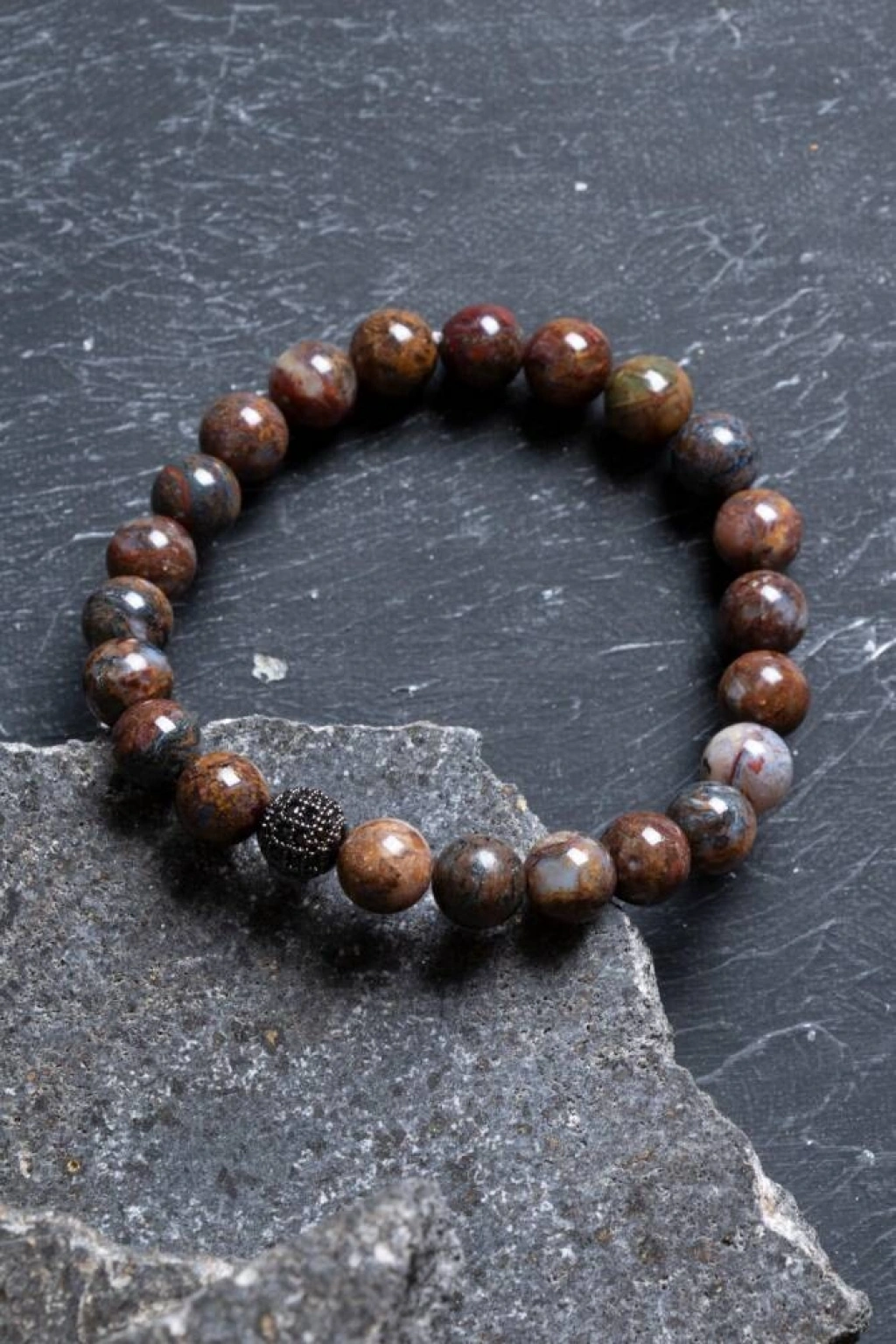 Pitersit Zirkon Aparatlı Doğal Taş Bileklik (8 mm) Fırtınanın gücünü zirkon ışıltısıyla mühürleyin, tarzınızda fark yaratın! Nadirliği ve büyüleyici desenleriyle koleksiyonerlerin en kıymetli parçalarından olan Pitersit, 8 mm'lik ideal taş boyutu ve göz alıcı Zirkon detaylarla yeniden yorumlandı. Dünyada sadece belirli bölgelerde bulunan Pitersit’in içindeki altın sarısı, derin mavi ve antrasit renkli hareler; zirkonun lüks dokunuşuyla birleşerek size hem spiritüel bir derinlik hem de seçkin bir şıklık sunuyor. Pitersit ve Zirkon’un Büyüleyici Sinerjisi Kaosun İçindeki Düzen (Pitersit): Hayatın en hareketli ve değişim dolu dönemlerinde zihinsel sükunet sağlar. Kararsızlıkları dindirerek, hedeflerinize fırtınanın içindeki bir kaptan gibi odaklanmanıza yardımcı olur. 8 mm İdeal Form: Taşların bu boyutu, Pitersit’in karakteristik 'fırtına desenlerini' en net şekilde sergiler. Bilekte ne çok baskın ne de çok sade durur; her ortamda fark edilen bir ağırlığa sahiptir. İrade ve Vizyon: Solar Pleksus ve Üçüncü Göz çakralarını dengeleyerek özgüveni artırır. Sezgisel yeteneklerinizi keskinleştirirken vizyoner bir bakış açısı kazandırır. Zirkon Işıltısı: Tasarımı taçlandıran zirkon aparatlar, Pitersit'in mistik derinliğini modern ve lüks bir parıltıyla dengeler. Tasarım ve Malzeme Özellikleri A Kalite Seçkin Taşlar: Hareleri belirgin, yüksek kaliteli ve %100 orijinal 8 mm Pitersit taşları kullanılmıştır. Lüks Zirkon Aparatlar: Parıltısını uzun süre koruyan, kararmaya dayanıklı özel kaplamalı zirkon detaylar ile tasarımın estetik değeri en üst seviyeye taşınmıştır. Eşsizlik: Doğası gereği hiçbir Pitersit taşı bir diğerinin aynısı değildir; bu bileklik dünyada yalnızca sizin sahip olacağınız benzersiz bir sanat eseridir. Konforlu Kullanım: (Modelinize göre: Dayanıklı esnek misinalı yapısı) sayesinde gün boyu bileğinizde konforlu ve güvenli bir kullanım sunar. Neden Bu Bilekliği Seçmelisiniz? Nadir Bir Ayrıcalık: Standart taşlardan sıkılan ve dünyada az bulunan kıymetli bir enerjiyi taşımak isteyenler için idealdir. Güçlü Bir Stil İmzası: Hem günlük kıyafetlerinizde bir odak noktası oluşturur hem de şık bir saatle birleştiğinde stilinizi zirveye taşır. Prestijli Bir Hediye: Nadir olana değer veren ve tarzında mücevher kalitesini arayan sevdikleriniz için unutulmaz ve anlam yüklü bir hediye.