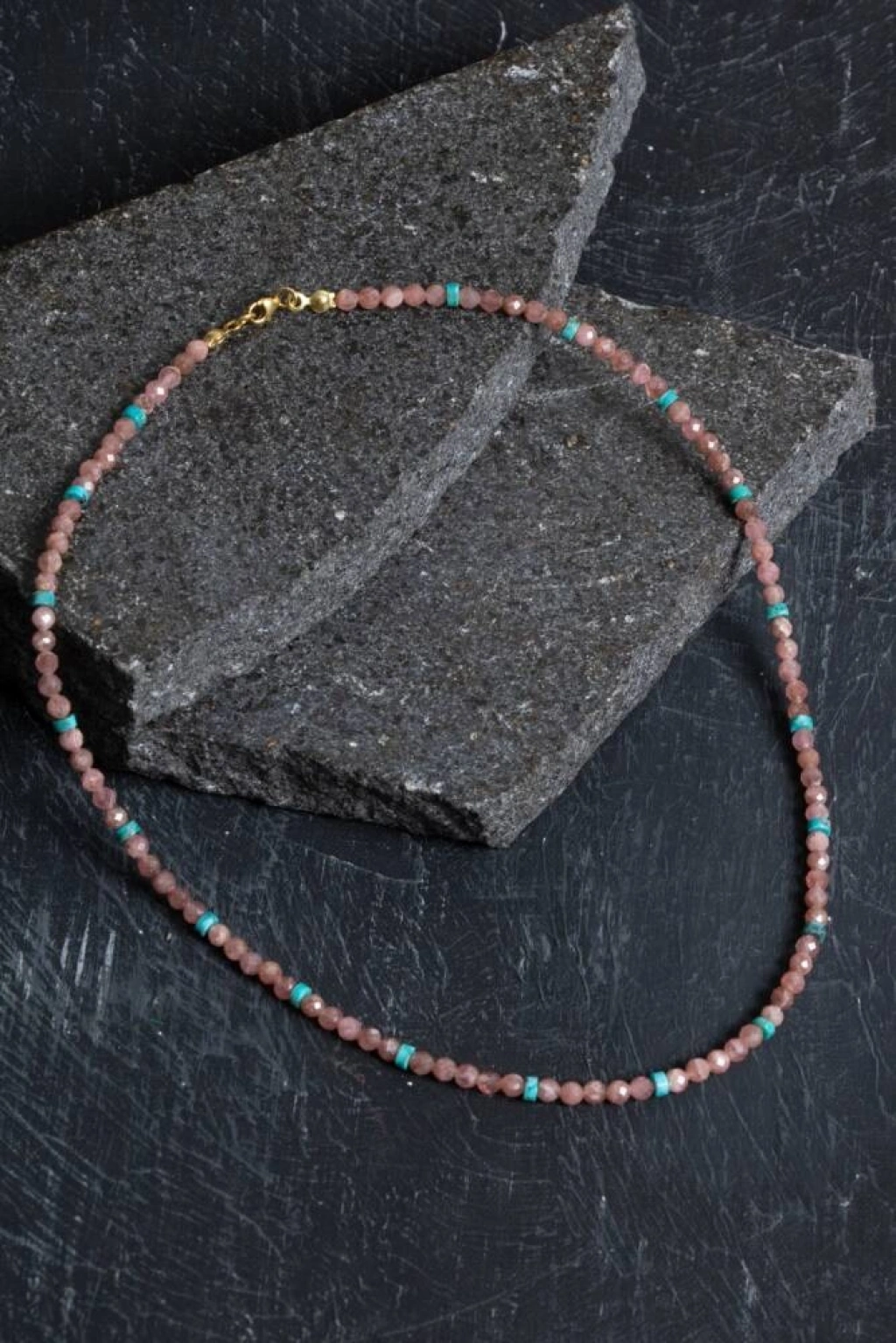 Sevgi, içsel denge ve zarafet bu özel kolyede buluşuyor. Rodokrozit, kalp çakrasını besler; sevgi, şefkat ve duygusal iyileşmeyi destekler. Turkuaz, koruyucu enerjisiyle bilinir; ruhsal denge ve net iletişim sağlar. Detaylarında kullanılan gerçek gümüş kapama, kolyeye zarif ve güçlü bir tamamlayıcılık katarken; her bir taş, sertifikalı ve doğal olarak seçilmiştir. ✨ Öne Çıkan Özellikler: Sertifikalı doğal Rodokrozit ve Turkuaz taşları Şık ve uzun ömürlü kullanım için gerçek gümüş kapama Sevgi, koruma, denge ve duygusal iyileşme etkileri El yapımı, unisex ve modern tasarım Günlük şıklığa zarif bir dokunuş ve anlamlı bir hediye seçeneği Bu kolye, hem kalbinize hem stilinize dokunur. Doğanın yumuşak enerjisini üzerinizde taşımak için ideal bir parça.