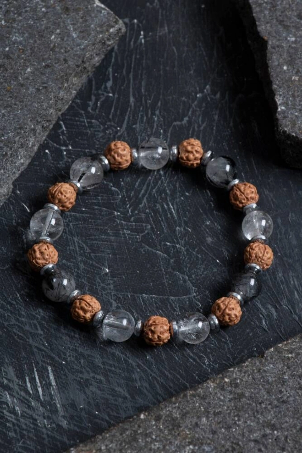 Odaklanma, spiritüel derinlik ve koruma bu bileklikte buluşuyor. Rutilli Kuvars, zihinsel netlik ve ilham verirken, enerji akışını güçlendirir. Rudraksha, manevi koruma sağlayan kutsal bir tohumdur; iç huzuru destekler ve negatif etkilerden arındırır. Hematit ise topraklayıcı özelliğiyle zihinsel denge sağlar ve anda kalmayı kolaylaştırır. Bu özel tasarım bileklik, her biri sertifikalı doğal taşlarla hazırlanmış ve modern bir çizgiyle sunulmuştur. ✨ Öne Çıkan Özellikler: Sertifikalı doğal Rutilli Kuvars, Rudraksha ve Hematit taşları El yapımı, güçlü ve doğal enerji uyumu Odaklanma, içsel huzur ve koruma etkileri Unisex kullanım için ideal tasarım Günlük kullanım ve anlamlı bir hediye alternatifi Doğal enerjilerin dengeli uyumunu bileğinizde taşıyın — bu bileklik hem stilinize zarafet katar, hem de ruhunuza iyi gelir.