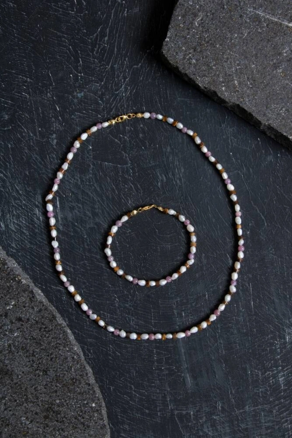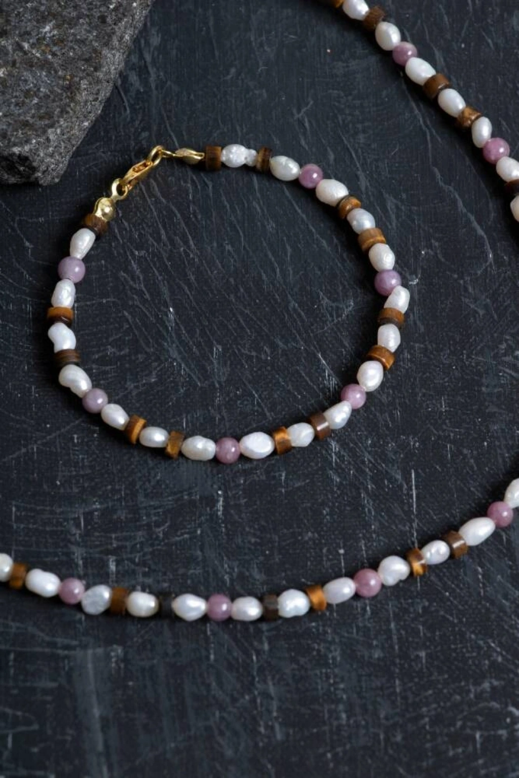 Güç, zarafet ve enerjik uyum bu özel setin her detayında kendini gösteriyor. Yakut, tutkuyu, canlılığı ve içten gelen özgüveni simgeler. İnci, zarif dokusuyla duygusal denge ve iç huzur sunar. Kaplan Gözü, kararlılığı destekler, özgüveni artırır ve ruhsal koruma sağlar. Kolye ve bileklik, detaylarındaki gerçek gümüş kapama ile hem estetik hem de uzun ömürlü kullanım sunar. Tüm taşlar %100 sertifikalı ve doğal kaynaklardan özenle seçilerek el işçiliğiyle bir araya getirilmiştir. ✨ Öne Çıkan Özellikler: Sertifikalı doğal Yakut, İnci ve Kaplan Gözü taşları Gerçek gümüş kapama ile tamamlanan şık detaylar Tutku, zarafet, cesaret ve ruhsal denge etkileri El yapımı, unisex ve zamansız tasarım Hem özel günlerde hem günlük kullanımda şıklık sunar Anlamlı ve değerli bir hediye alternatifi Bu set; stilinizi yansıtan değil, ruhunuza da dokunan bir bütünlük sunar. Enerjisiyle güçlendiren, görünümüyle büyüleyen zarif bir tasarım.
