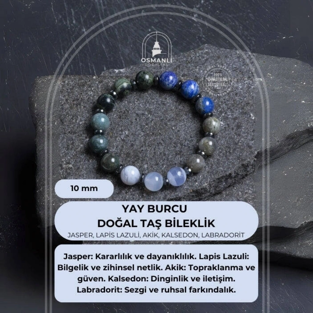 Keşif, bilgelik ve içsel güç… Yay burcunun özgür ruhunu bileğinizde taşıyın. Bu özel erkek bilekliği, Yay burcunun maceracı, iyimser ve bilgiye açık yapısına hitap eden güçlü doğal taşlarla tasarlandı: Jasper, kararlılık ve dayanıklılık sunarak enerjiyi dengeler. Lapis Lazuli, bilgelik, sezgi ve zihinsel netlik kazandırır. Akik, topraklanmayı destekler, güven verir. Kalsedon, dinginlik ve açık iletişimi teşvik eder. Labradorit, sezgileri güçlendirir ve ruhsal farkındalığı artırır. Bu taşların bir araya gelişi, Yay burcunun sınır tanımayan doğasını dengelerken, ruhsal gelişim ve zihinsel açıklık sunar. %100 doğal ve sertifikalı taşlarla hazırlanan bu bileklik, 10 mm taş boyutu ve maskülen tasarımıyla güçlü bir duruş sunar. Misinalı yapısı sayesinde bileğe kolayca uyum sağlar, konforlu ve pratik bir kullanım sağlar. ✨ Öne Çıkan Özellikler: Sertifikalı Jasper, Lapis Lazuli, Akik, Kalsedon ve Labradorit taşları Yay burcuna özel enerji: bilgelik, denge, sezgi ve keşif ruhu 10 mm doğal taşlarla güçlü ve erkeksi görünüm Misinalı yapı: konforlu, pratik ve sağlam kullanım El işçiliğiyle hazırlanmış, sade ve şık tasarım Günlük stile ve enerjisel desteğe uygun Bu bileklik; sadece bir aksesuar değil, Yay burcunun özgür, öğrenmeye açık ve ruhsal olarak büyümeye istekli doğasını taşıyan özel bir enerji parçasıdır.