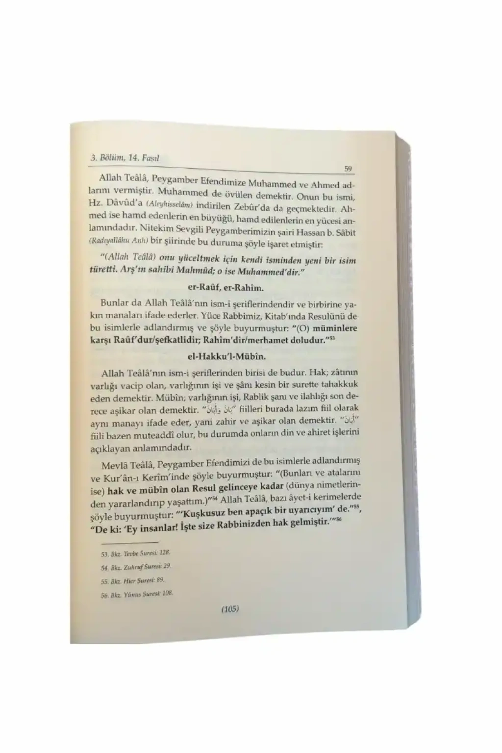 Dört bölümden meydana gelen bu eserin birinci bölümünde Hz. Peygamber (Sallellâhu Aleyhi ve Sellem)’in sahip olduğu maddi-manevi özellikler, Allah Teâlâ katındaki mümtaz makamı ve mucizeleri beyan edilmiş, ikinci bölümde ise Peygamber’e iman, itaat, gönülden sevgi beslemek ve ona salât-ü selam getirmenin önemi gibi hususlar işlenmiştir. Giriş mahiyetindeki bu ilk iki bölümden sonra kitabın asıl omurgasını teşkil eden üçüncü bölüm, Allah Resûlü’nde (Sallellâhu Aleyhi ve Sellem) bulunabilecek ve kesinlikle bulunamayacak özellikleri, Allah Teâlâ’nın onu günahlardan ve kötülüklerden koruduğu gerçeğini ve bir beşer olması itibariyle sergilediği davranışları ele almaktadır. Dördüncü ve son bölümde ise, Resûlullah (Sallellâhu Aleyhi ve Sellem)’e dil uzatanların dini hükümleri hususunda bilgiler verilmiştir.