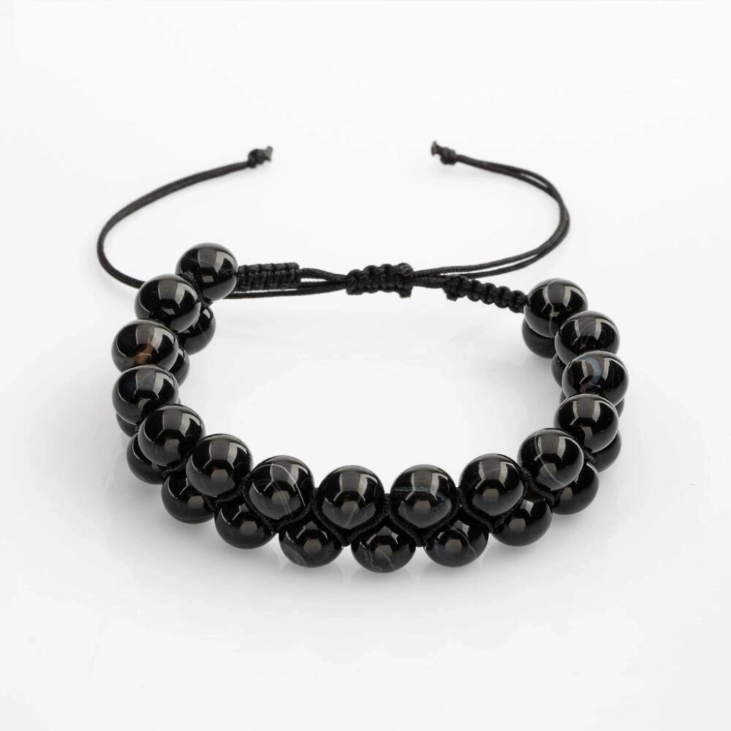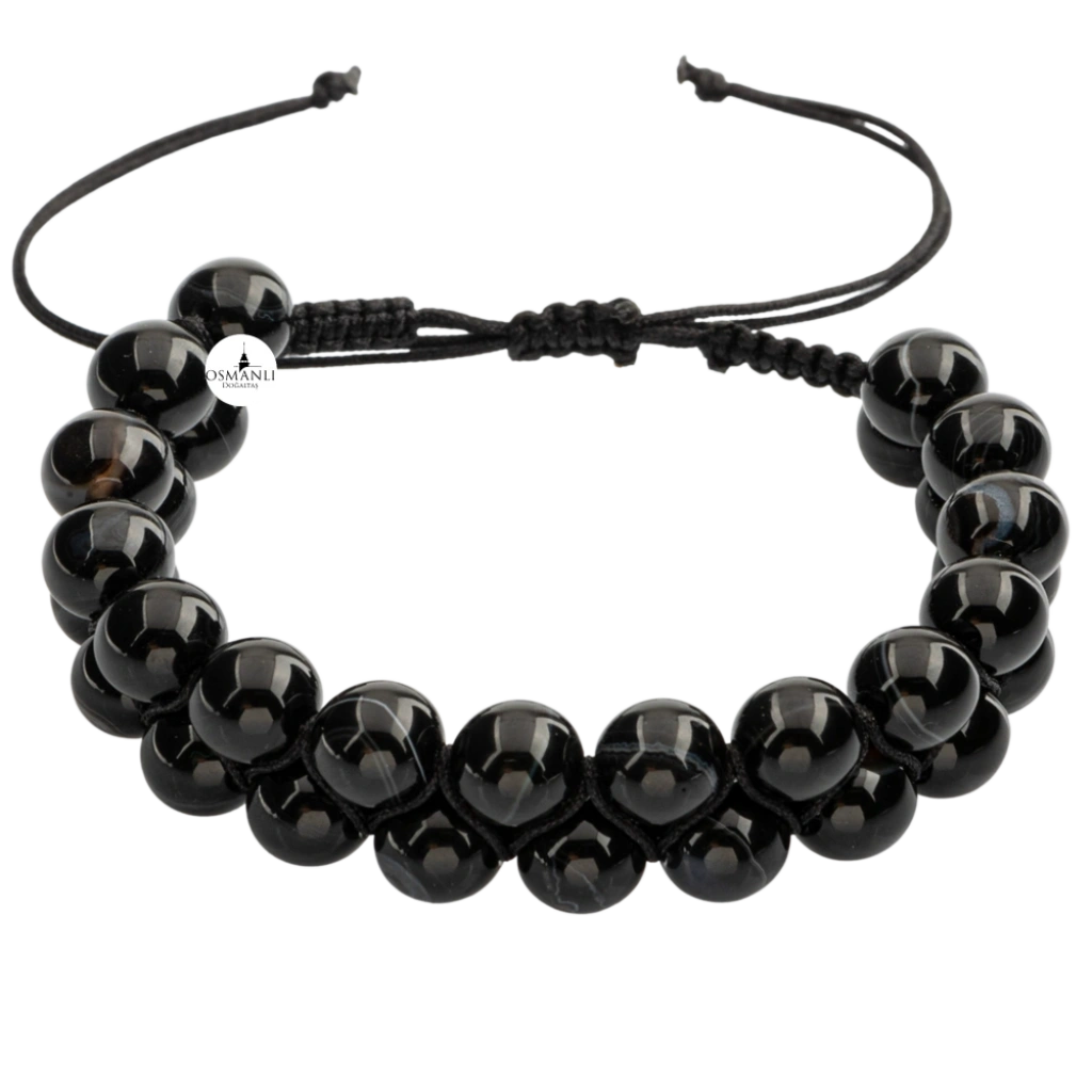 Siyah Göz Akik 8mm Çift Sıra Makrome Doğal Taş Bileklik