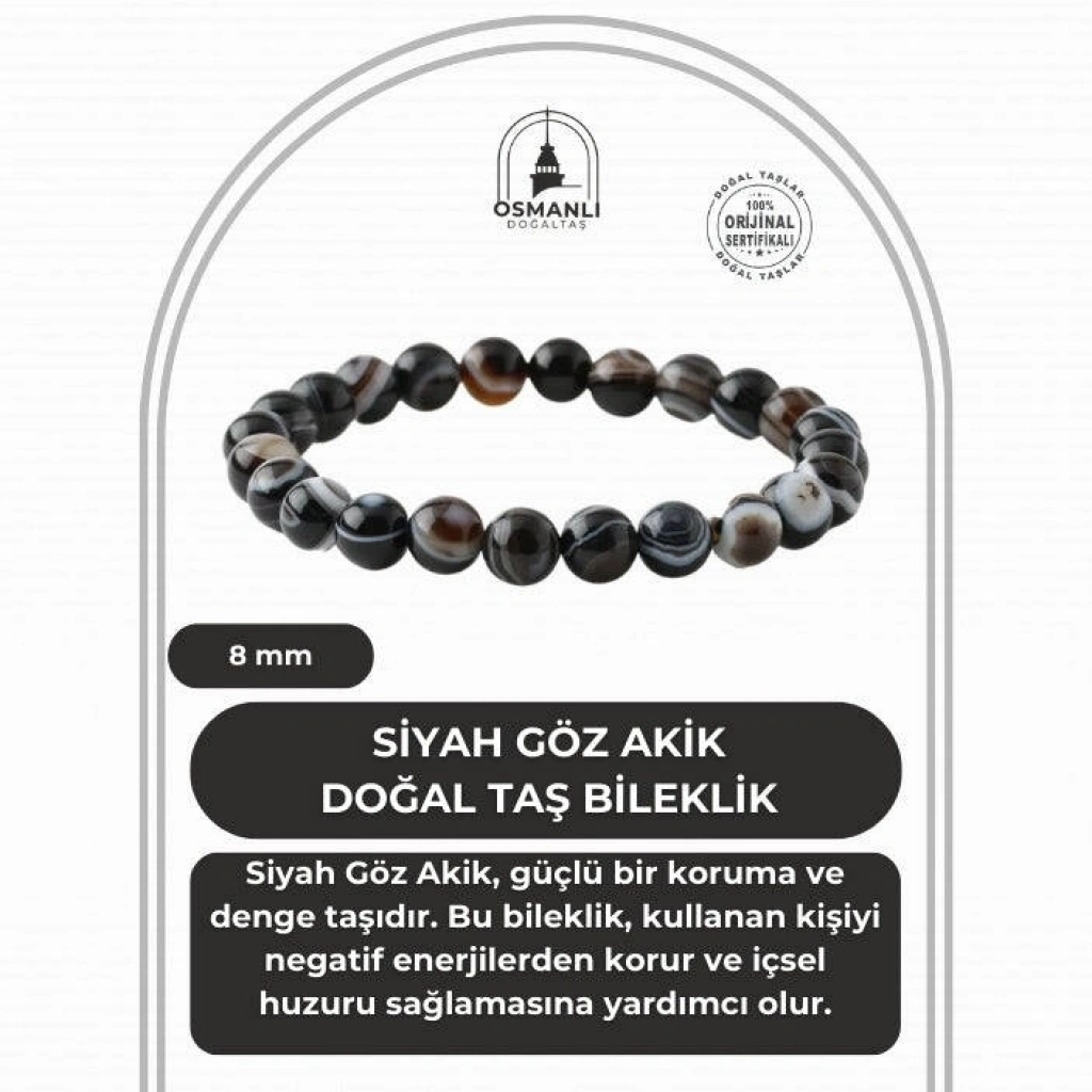 TÜM TAŞLARIMIZ SERTİFİKALI ve %100 ORJİNAL GERÇEK DOĞAL TAŞTIR. Doğal taş takılarının bu eşsiz güzelliği ve faydalarıyla müşterilerimize en kaliteli ve en özel takıları sunuyoruz. Her bir takı, tasarımcılarımız tarafından özenle hazırlanmış, doğal taşların renkleri ve enerjileri ile birlikte, size en uygun olanı seçmenizi sağlar. Doğal taş takılarımız, herhangi bir moda stiline mükemmel bir şekilde uyum sağlar. Aynı zamanda doğanın eşsiz güzelliklerini keşfetmek isteyenler için de harika bir seçenek sunarlar. Kendinizi özel hissetmek istediğinizde, doğal taş takılarımız sizin için mükemmel bir seçenek olacaktır. Ürün İçeriğindeki Taşlar Aşağıda Listelenmiştir. Siyah Göz Akik Taşı Özellikleri: Sosyalleştirir. Yaratıcılığı, aklı ve mantığı besler. Cesareti artırır, korkuların yenilmesine yardımcı olur. Odaklanmayı artırır. Pozitif enerji verir: Rahatlatır. Stresi Giderir.