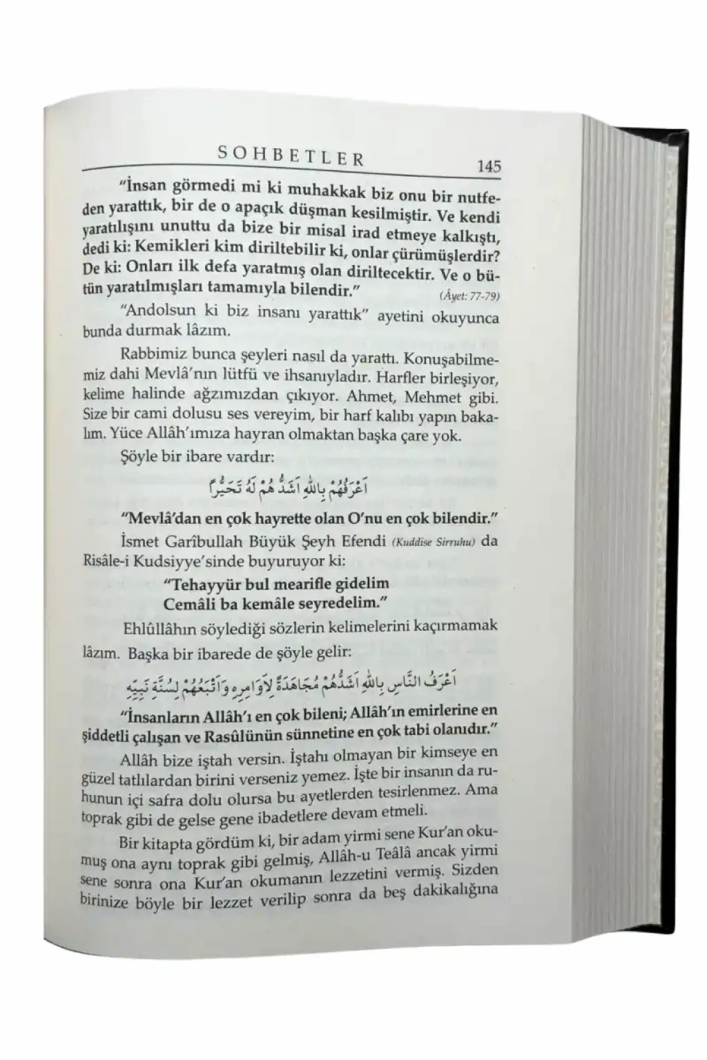 Efendi Hazretlerimiz (Kuddise Sirruhu) , Efendi Babamız Ali Haydar Efendi (küddise sirruhu) Hazretlerinin âdeti üzere pazar sabahı Hatm-i Hacegan’da hafız efendinin okumuş olduğu âyeti kerimelerden ve Mustafa İsmet Garibullah (Büyük Şeyh Efendi) (Kuddise Sirruhu) Hazretlerinin, Risale-i Kutsiyye isimli veciz eserindeki beyitlerden sohbet yaparlardı.