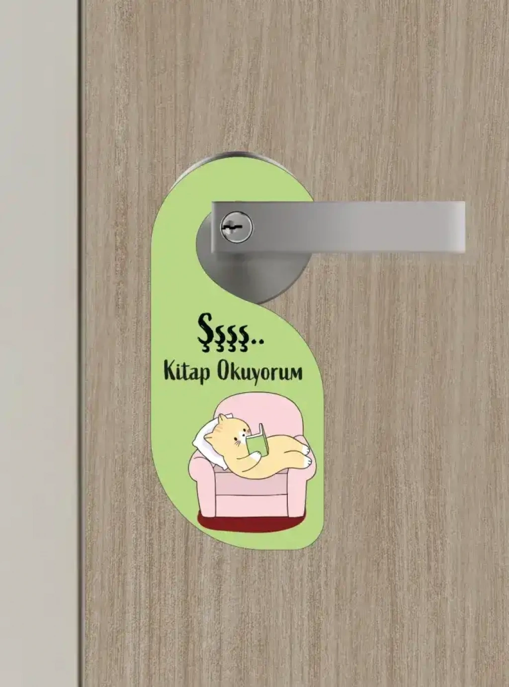 Şşş Kitap Okuyorum Kapı Askısı Kapı Uyarı Levhası