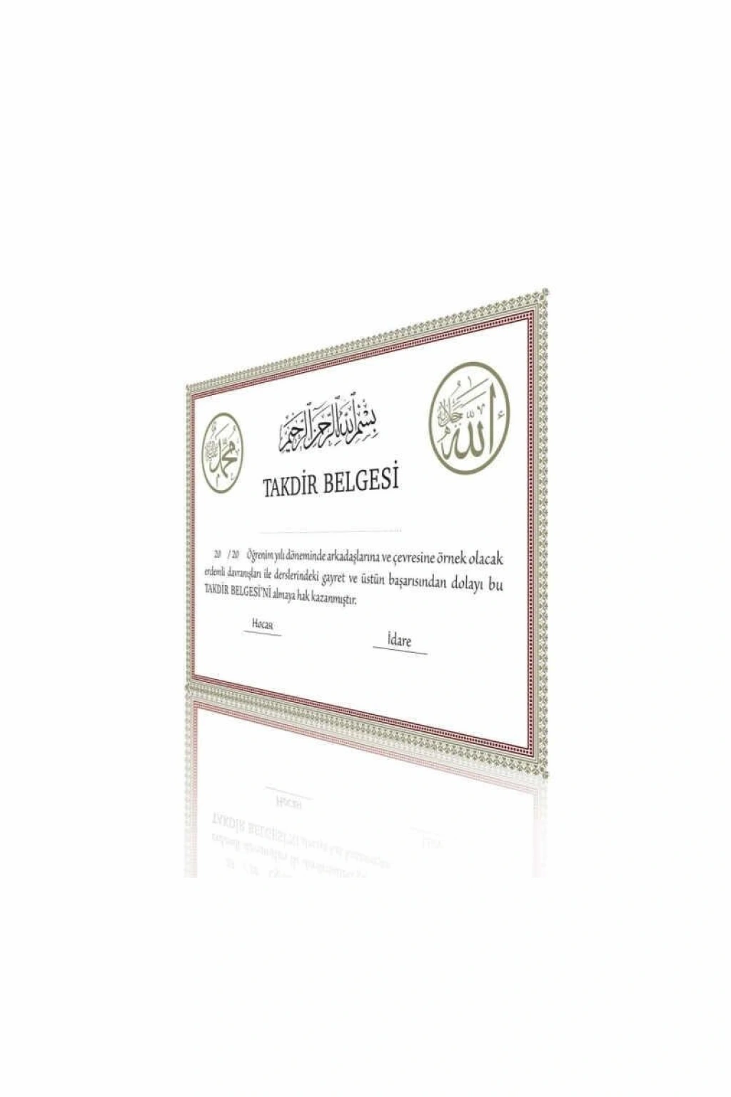 Takdir Belgesi Çerçeveli