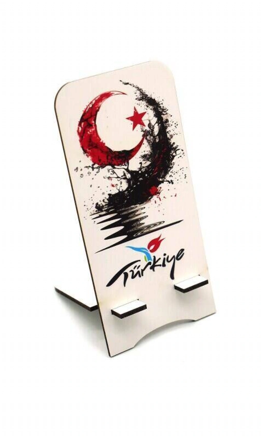 Ahşap masaüstü telefon koyma standı toplamda 2 parçadan oluşmaktadır.