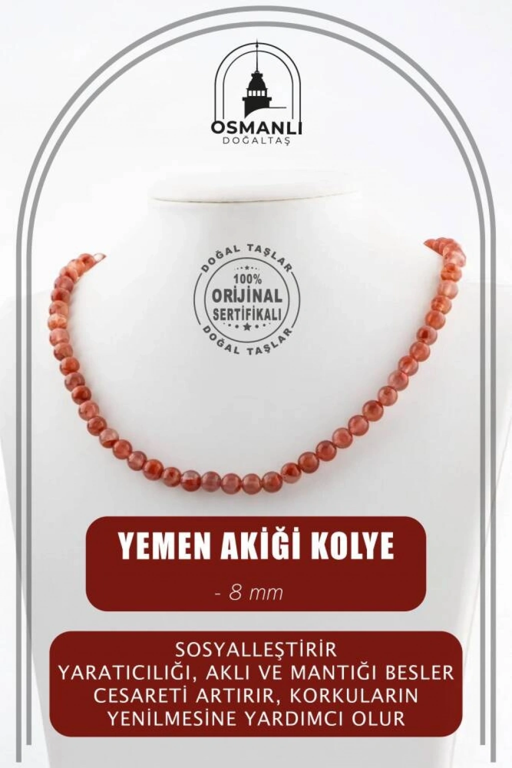TÜM TAŞLARIMIZ SERTİFİKALI ve %100 ORJİNAL GERÇEK DOĞAL TAŞTIR. Doğal taş takılarının bu eşsiz güzelliği ve faydalarıyla müşterilerimize en kaliteli ve en özel takıları sunuyoruz. Her bir takı, tasarımcılarımız tarafından özenle hazırlanmış, doğal taşların renkleri ve enerjileri ile birlikte, size en uygun olanı seçmenizi sağlar. Doğal taş takılarımız, herhangi bir moda stiline mükemmel bir şekilde uyum sağlar. Aynı zamanda doğanın eşsiz güzelliklerini keşfetmek isteyenler için de harika bir seçenek sunarlar. Kendinizi özel hissetmek istediğinizde, doğal taş takılarımız sizin için mükemmel bir seçenek olacaktır. Ürün İçeriğindeki Taşlar Aşağıda Listelenmiştir. Yemen Akik Taşı Özellikleri: Sosyalleştirir. Yaratıcılığı, aklı ve mantığı besler. Cesareti artırır, korkuların yenilmesine yardımcı olur. Odaklanmayı artırır. Pozitif enerji verir: Rahatlatır. Stresi Giderir. BİLGİ: Doğal taşların faydaları günümüzde birçok kullanıcıdan alınan geri dönüşlerde defeatle gözlemlenmiştir. Kan dolaşımına ve sindirim sistemine bir ilaç gibi dahil edilememesi; enerjileri ve kullanımı açısından sunacağı faydaya inanma ön koşulu gerektirmesiyle kesinlikle bir ilaç mahiyetinde değildir. Fakat geçmişten günümüze Biruni ve İbn-i Sina gibi büyük tıp alimleri doğal taşlar üzerinde düşünmüş, araştırmış ve geliştirdikleri tedavi yöntemlerine dahil etmişlerdir.Doğal taşların faydaları bilimsel bir deney-gözlem sürecinden ziyade geçmişte yaşayan toplumların ve tıp alimlerinin kullanım amaçlarına istinaden belirlenmekte, tespit edilmektedir. Bil biliyoruz ki şifa sadece Allah’tandır. Nereden ve nasıl geleceği belli olmaz. KAYNAK: Osmanlı Doğaltaş taşların özellikleri ve kullanım bilgileri için aşağıdaki kaynaklardan faydalanmaktadır.Walter Schumann, Gemstones Of The World (Sterling Yayın Evi, 17. Baskı).Judy Hall, Değerli Taşlar Kitabı (Alfa Basım Yayın, 3. Basım, 2021)Muhammed Bin Mahmud-ı Şirvani, Tuhfe-i Muradi. Hazırlayan: Mustafa Argunşah (Türk Dil Kurumu, 1999)Patrick Voillot, Elmaslar ve Değerli Taşlar (Yapı Kredi Yayınları, 1. Baskı, 2013)