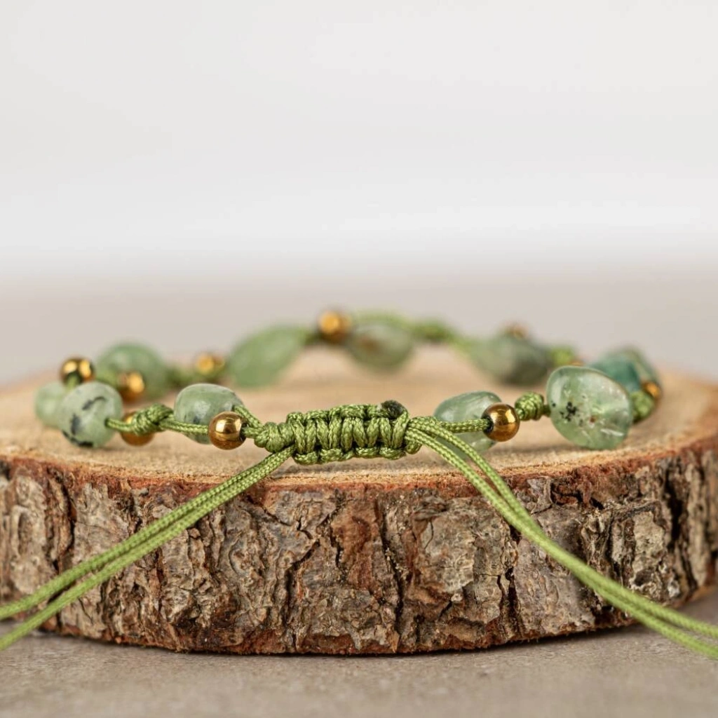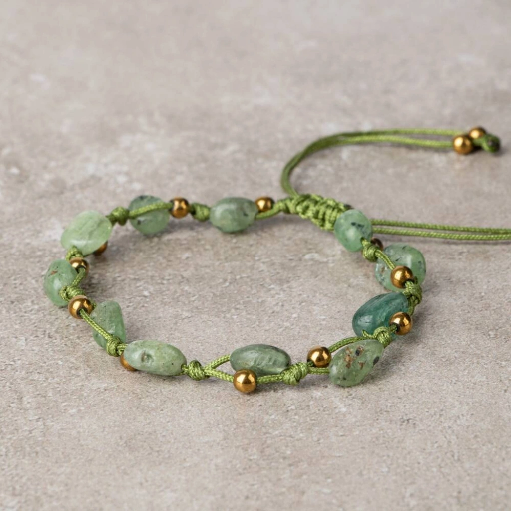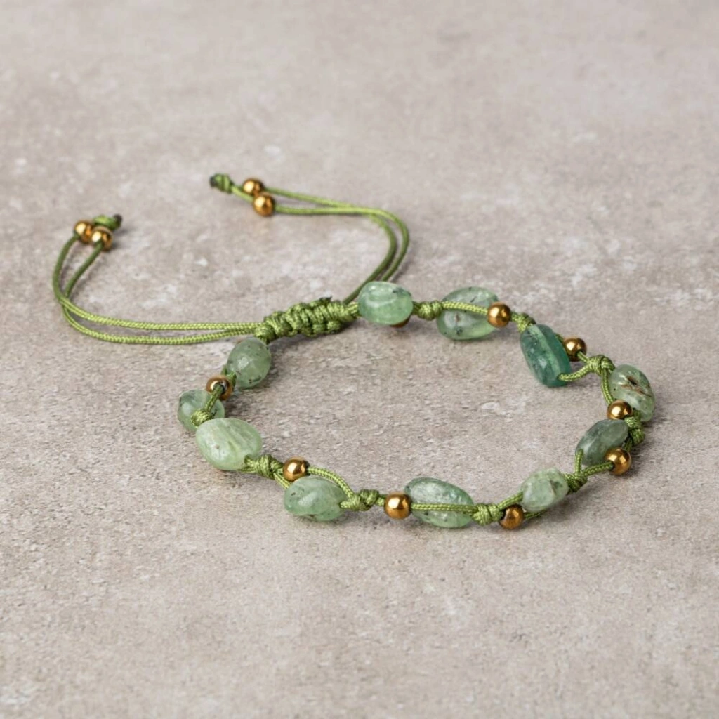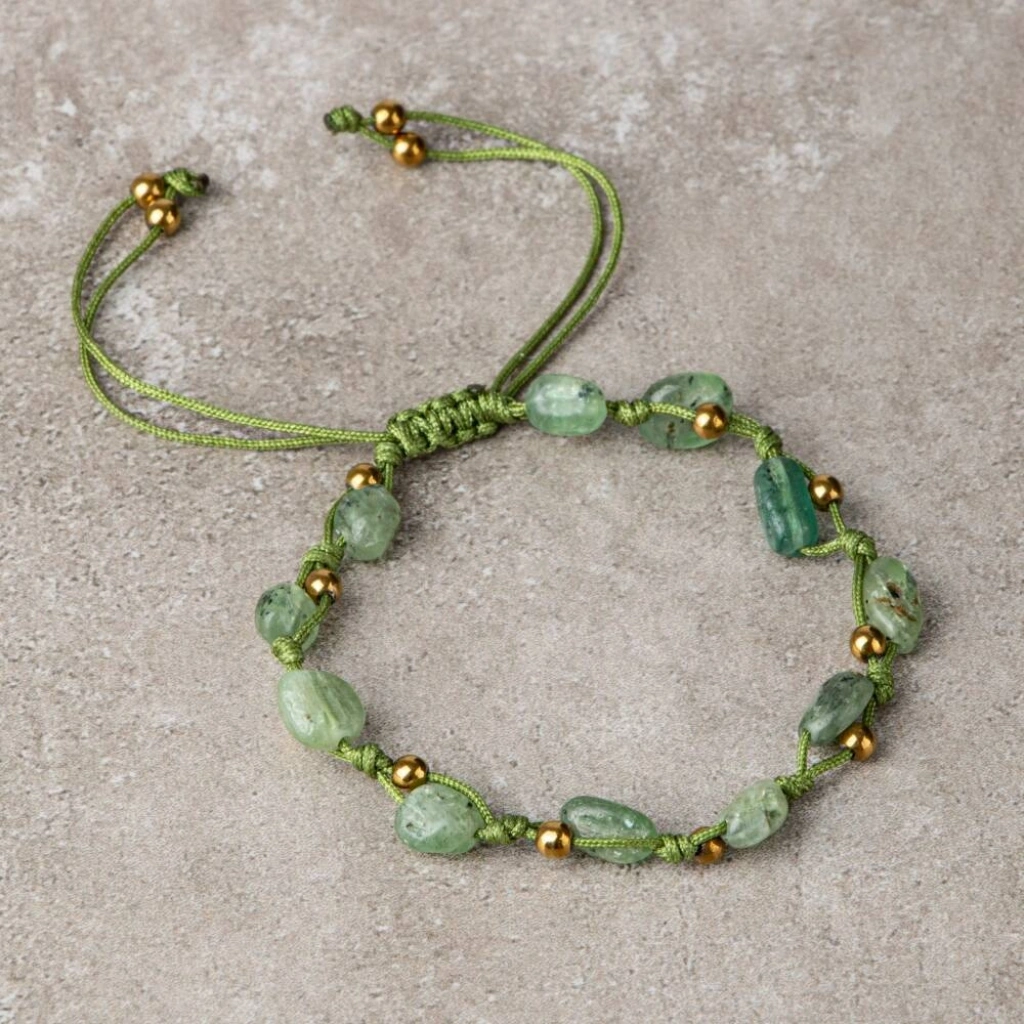 Yeşil Kiyanit Natürel Kesim Doğal Taş Makrome Bileklik